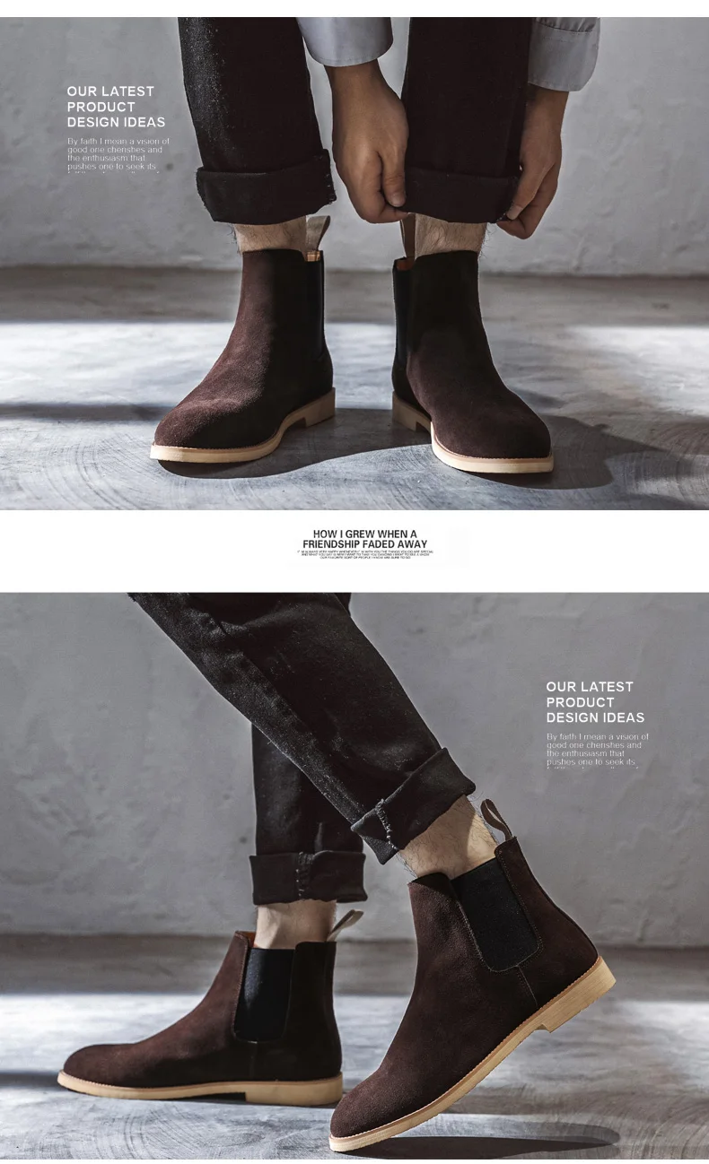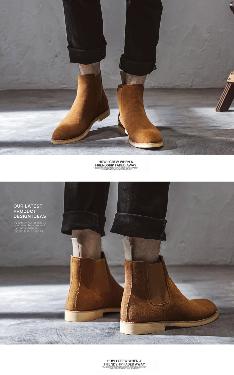 Мужские ботинки челси, демисезонные элегантные ботинки из коровьей замши, размера плюс, 35, 47