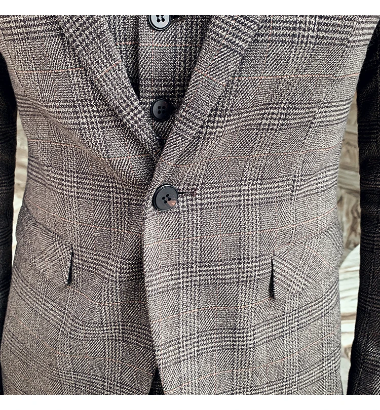 Мужской твидовый костюм на одной пуговице, клетчатый облегающий деловой костюм для жениха на одной пуговице, костюм для делового костюма (Блейзер + брюки), 2 предмета