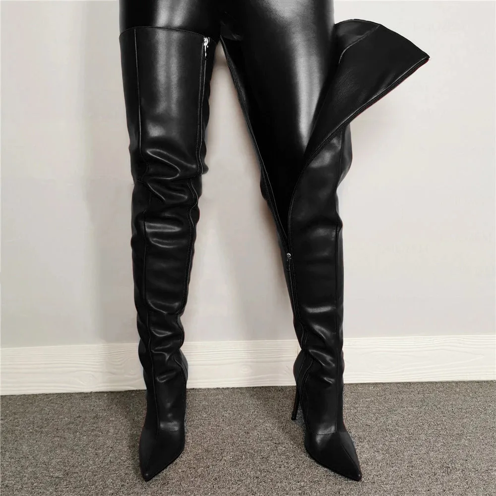 Новые сапоги для танцев на шесте ботфорты на высоком каблуке водонепроницаемые женские высокие сапоги до колена на молнии сбоку размера плюс, 34-43, туфли на шпильке