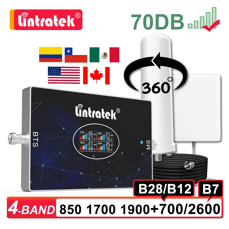 Сотовый усилитель 2G 3G 4G усилитель сигнала четыре диапазона B28 700 850 1700 1900 2600 B7 CDMA мобильный ретранслятор Omni антенна комплект