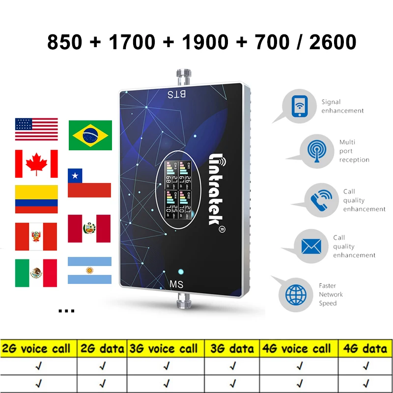 1) Настоящий четырехполосный усилитель сигнала, не нужно беспокоиться о частотах.2) 4 высококачественных обновленных ЖК-дисплея, сигнал в реальном времени показывает на дисплее.3) Запатентованный внешний вид Lintratek, обновленный дизайн для эффективного отвода тепла.4) высокий коэффициент усиления: 70 дБ, можно подключить 1-4 внутренние антенны одновременно, каждая внутренняя антенна может покрыть 200-300 кв. М без каких-либо препятствий5) большая выходная мощность: 20 дБм, расширение покрытия, более стабильная производительность6) ALC интеллектуальная версия обновления 2020 V7.07) 2G 3G 4G сигнал в Европе и Азии (full netcom)8) напряжение 5 В 3 А, более стабильный эффект9). Сертификация ROHS / CE / ISO.