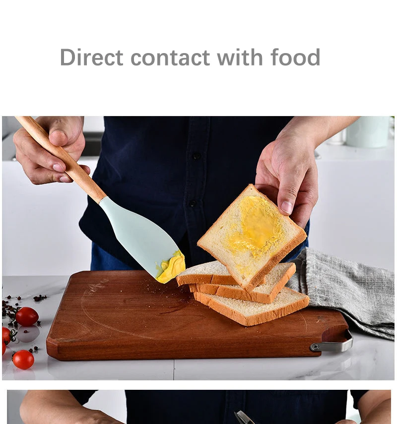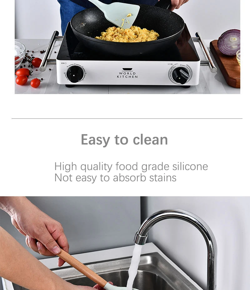 Защита окружающей среды, нетоксичный, термостойкий, антипригарный, прочный, безопасный, легко чистится продукты для кухонной посудыПодходит: микроволновая печь, тостер, пароварка, можно варить и стерилизовать.Материал: силикон + дерево из натуральной акацииЦвет: зеленыйРазмер: как на фото
