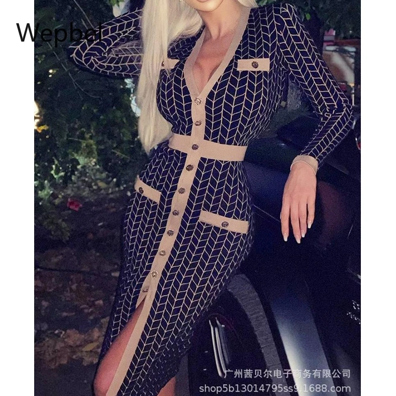 Длинные облегающие платья Wepbel, модное Деловое платье с глубоким V-образным вырезом, женское однобортное Платье-футляр с длинным рукавом, кардиган, уличная одежда