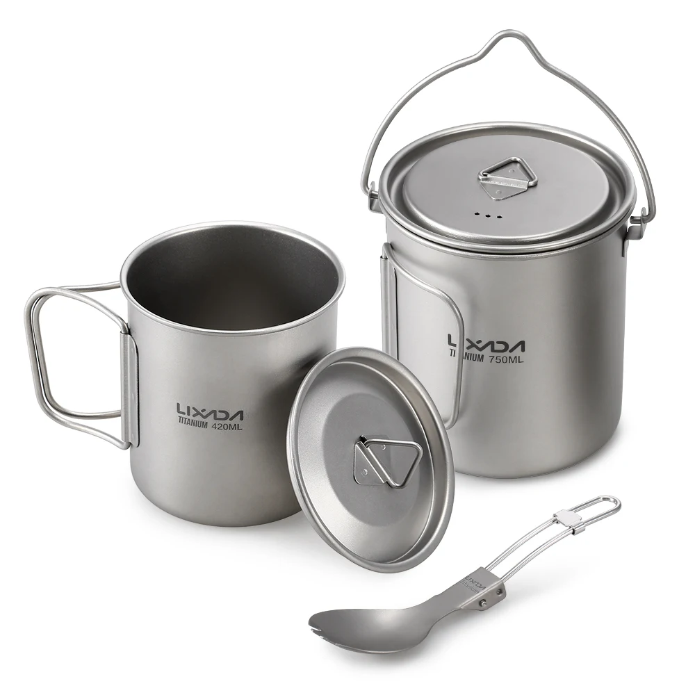 Lixada 3 шт. титановый 750 мл горшок 420 мл кружка для воды с крышкой ручка стандартная для кемпинга на открытом воздухе пикника альпинизма