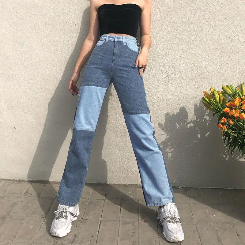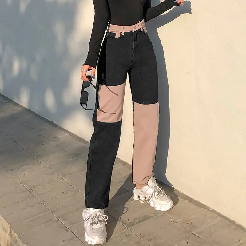 Джинсы женские прямые большого размера, дизайнерские брюки оранжевого цвета в стиле ретро, уличная одежда, пикантные повседневные штаны в стиле пэчворк