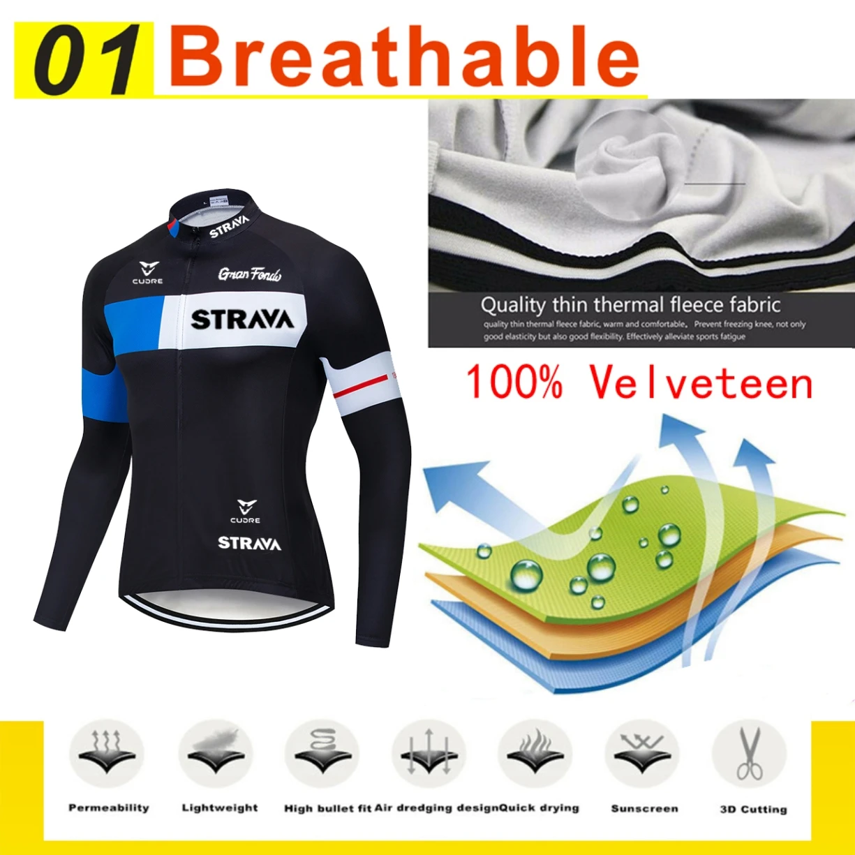 STRAVA 2021 зимняя велосипедная одежда с длинным рукавом Джерси Мужская профессиональная команда теплая куртка MTB Одежда термальный флис Ropa Ciclismo
