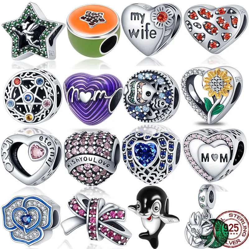 Женские Шармы и бусины из серебра 925 пробы с фианитами, подходят для оригинального браслета 3 мм, Подарочные ювелирные украшения на день рождения