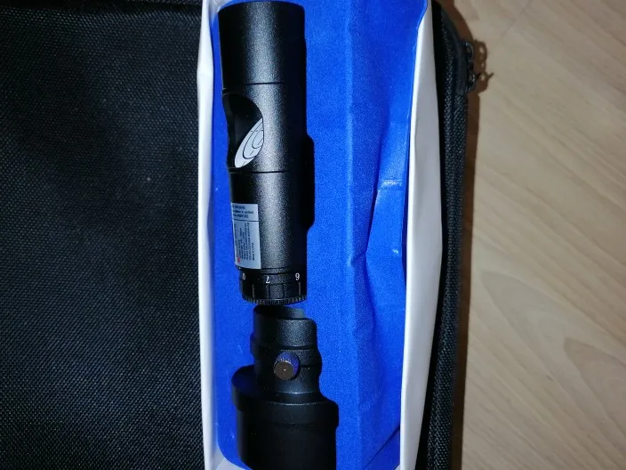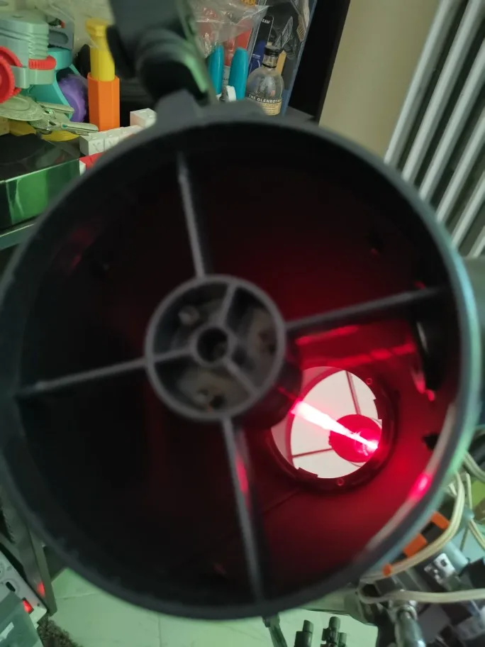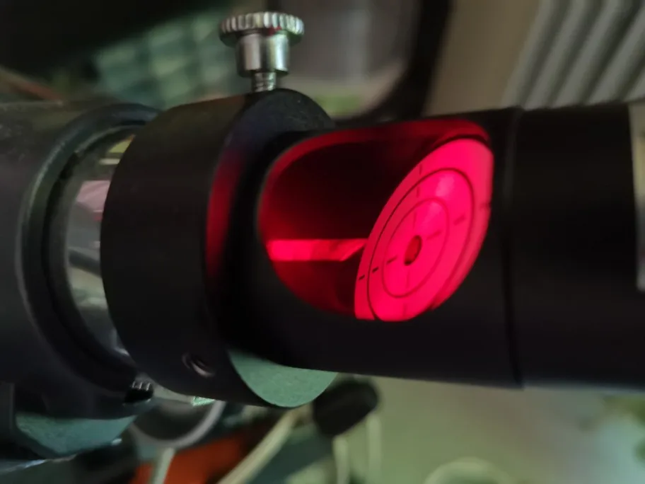 Классный чешир, полностью из металла, пришел очень быстро. Обратите внимание, что перед юстировкой телескопа нужно проверить юстировку чешира покрутив его вокруг своей оси в телескопе. если луч лазера при этом сильно смещается, то чешир нужно юстировать, а то можно ухудшить юстировку телескопа.