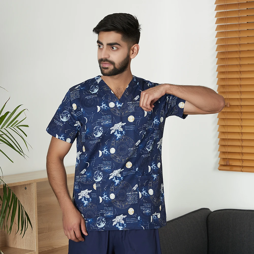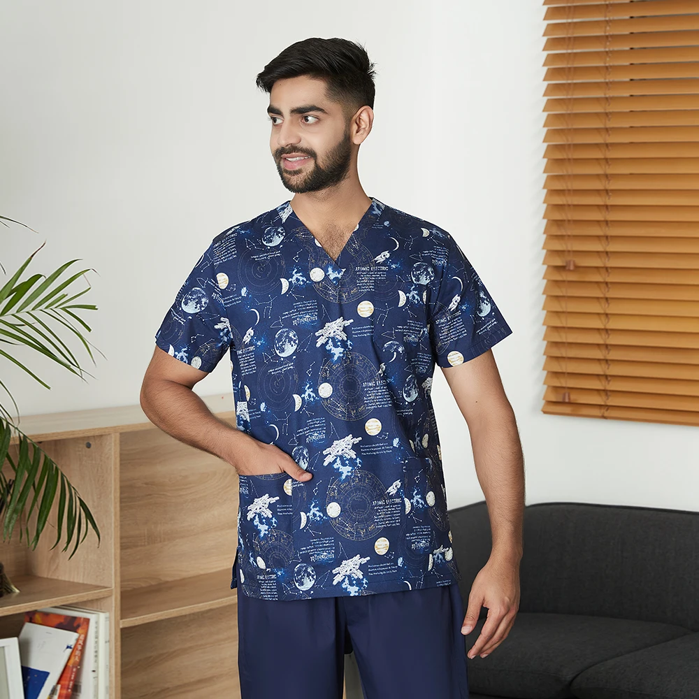 Воздухопроницаемый хлопковый костюм для любителей астрономии с принтом звездного неба, медицинский грязеотталкивающий костюм для салона красоты