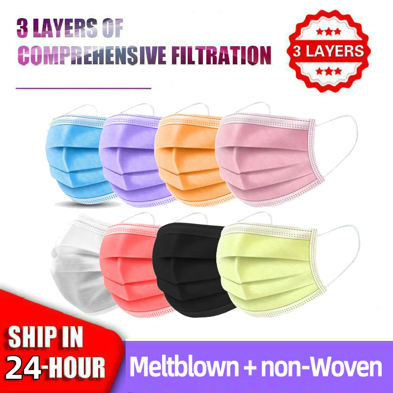 Одноразовые маски 10-200 шт., маска смешанных цветов, черная маска, слойная маска для лица, цветные маски, хирургические маски