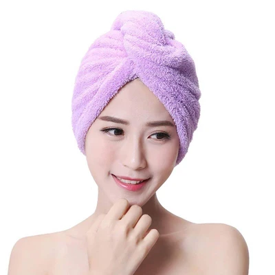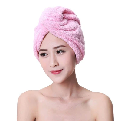 Банное полотенце для сухих волос из кораллового бархата, Быстросохнущий тюрбан из микрофибры, супервпитывающий женский колпачок для волос с утолщенными пуговицами