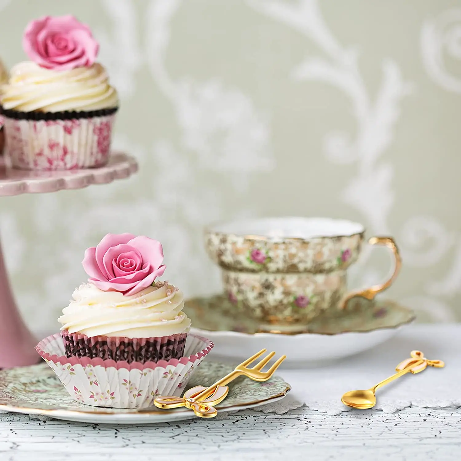 Type2Swan Base Holder with 6pcs Ice Cream Spoons Forks Teaspoons