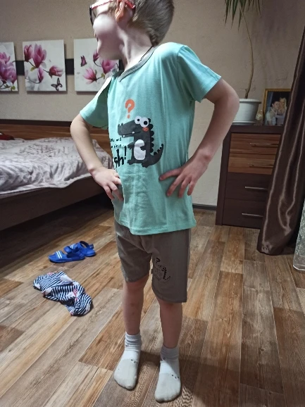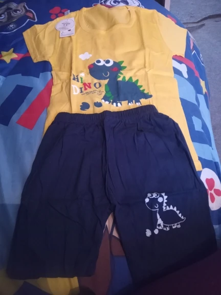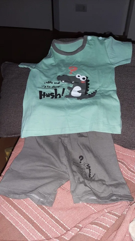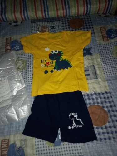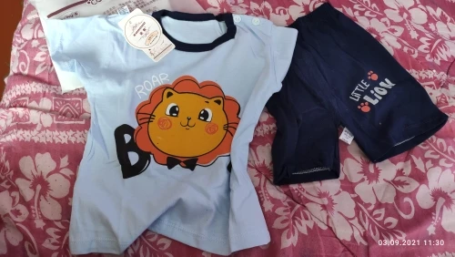 Пришло быстро. Упаковано хорошо (даже не помялось). Продавец отправил по низкой цене. Принт яркий, как на картинке. Вообще, комплект очень лёгкий, для лета отлично. В целом, мне понравилось. Размер идеально подошёл малышу, которому год и 4 месяца.