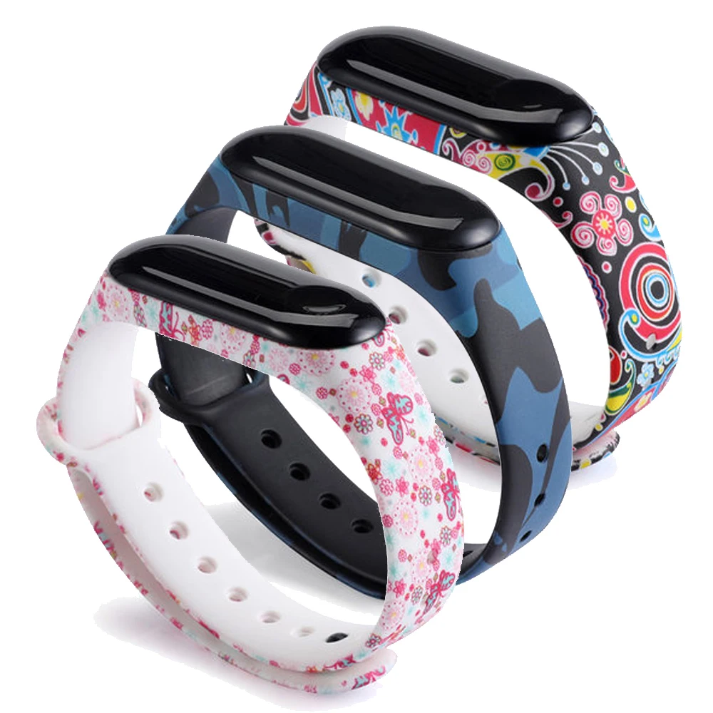 Силиконовый ремешок с цветным принтом для Xiaomi Mi band 6 5 4, мод...