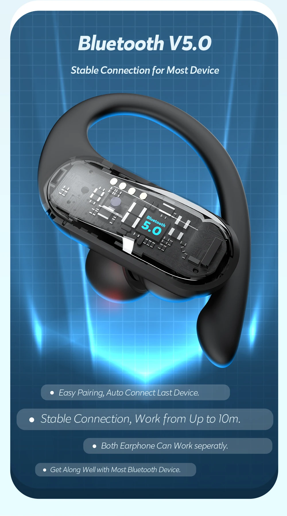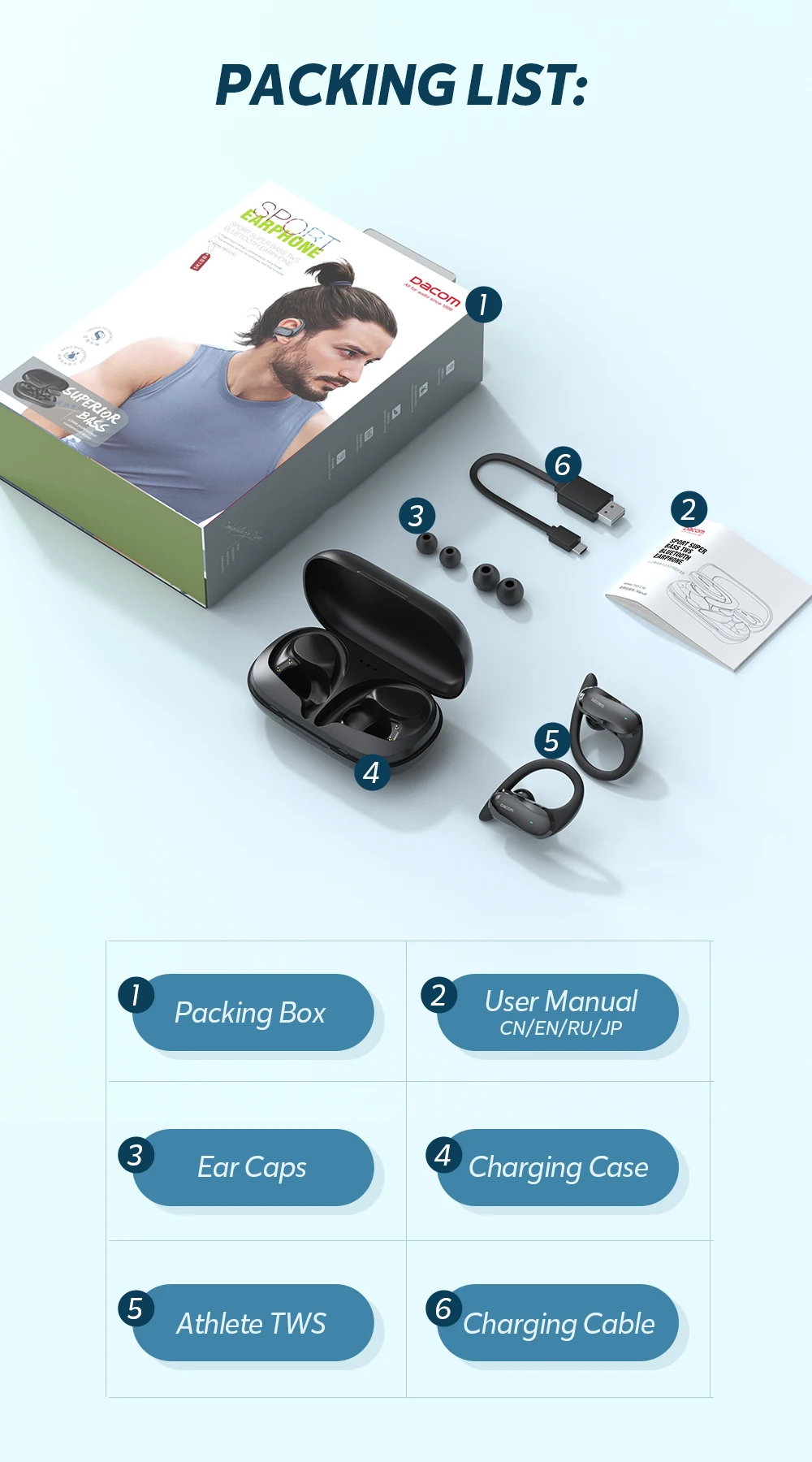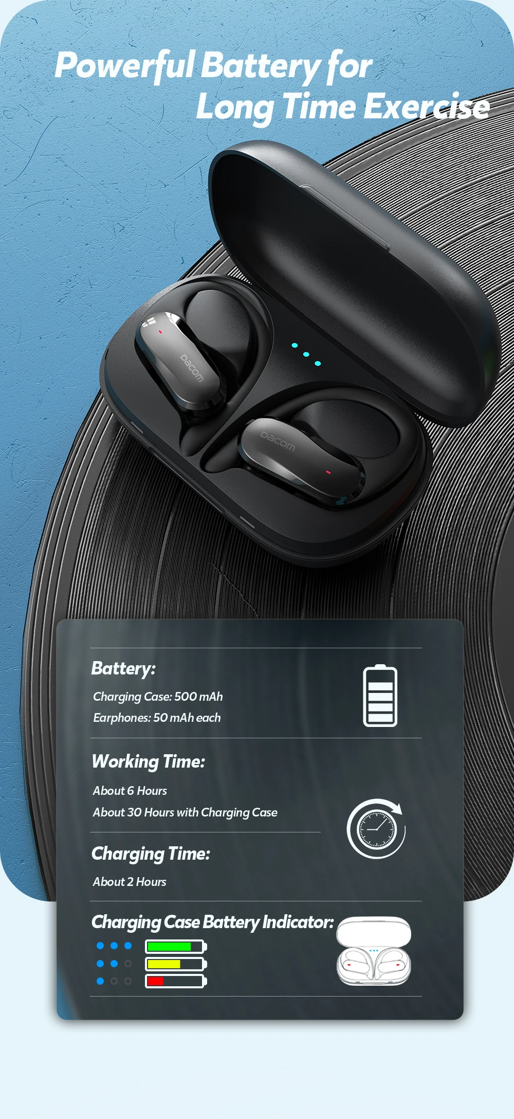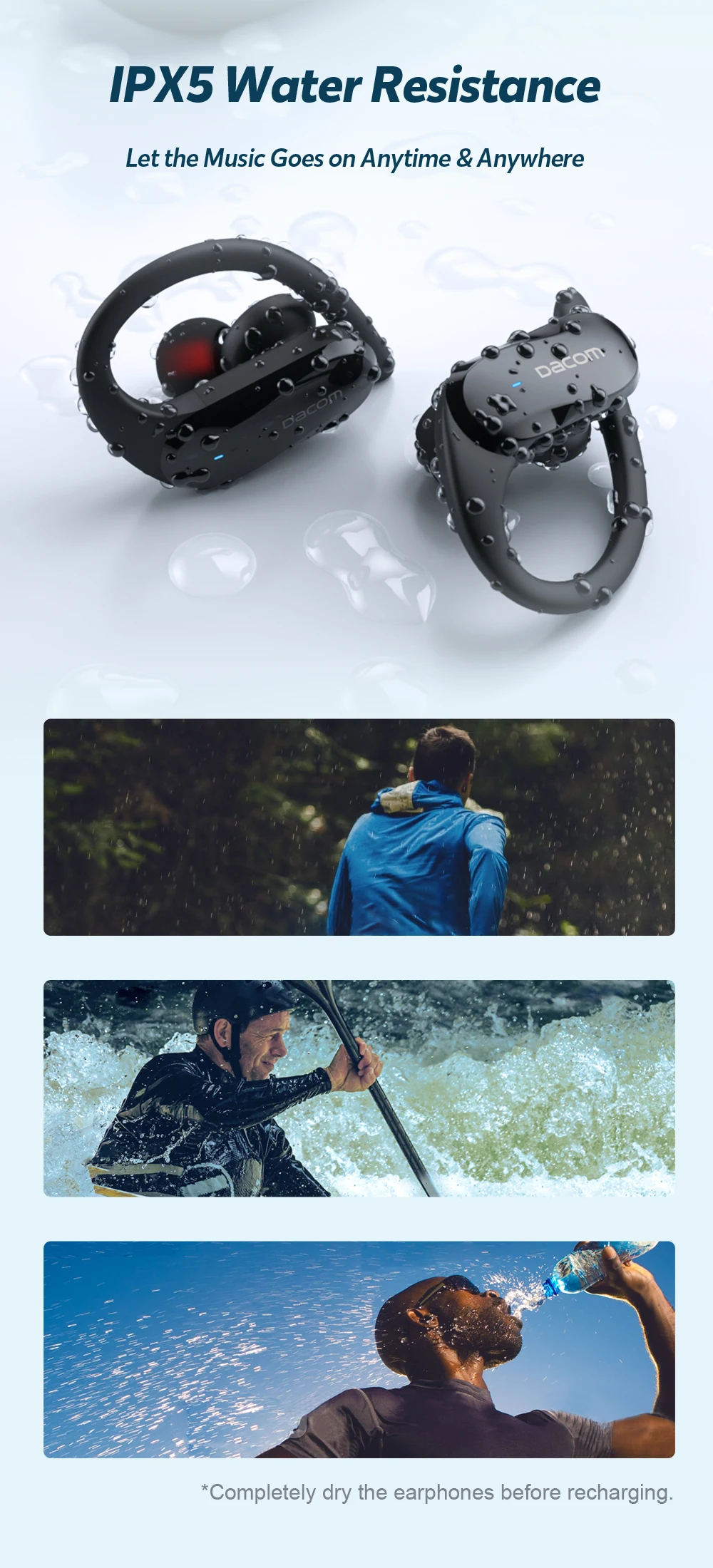TWS-гарнитура DACOM ATHLES, Bluetooth-гарнитура, подвесное ухо, сенсорное шумоподавление, тяжелые басы, настоящий беспроводной стерео для iPhone, Samsung