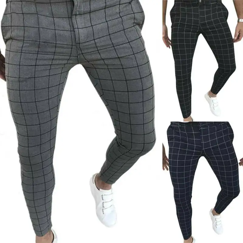 Мужские клетчатые узкие брюки-карандаш, формальные, повседневные, деловые, узкие