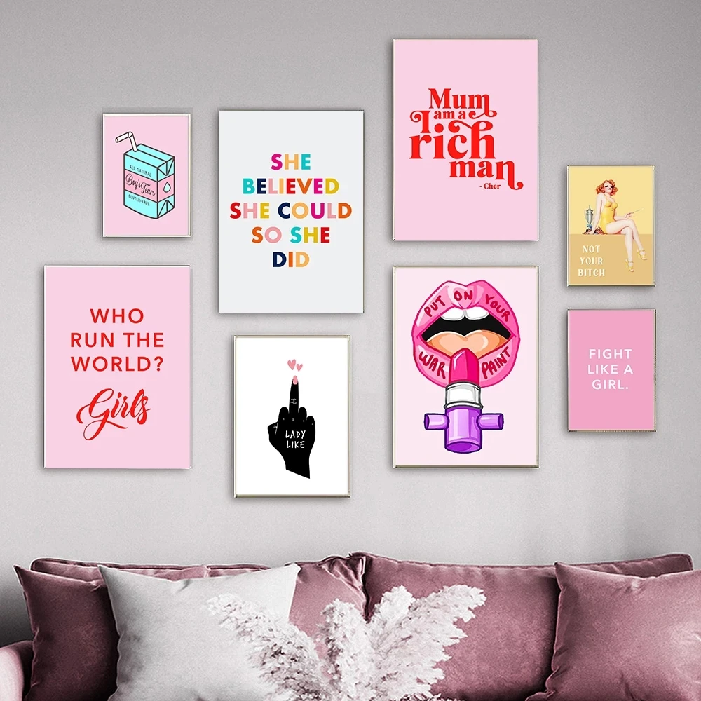 Картина на холсте HD с принтом Феминистская мода розовая девушка Power настенный плакат Декор для дома картины для гостиной модульный без рамки