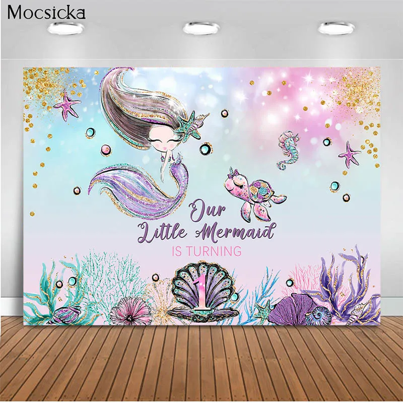 Фон для фотосъемки детей с изображением русалки морского конька фотография декор Фотография 1 год
