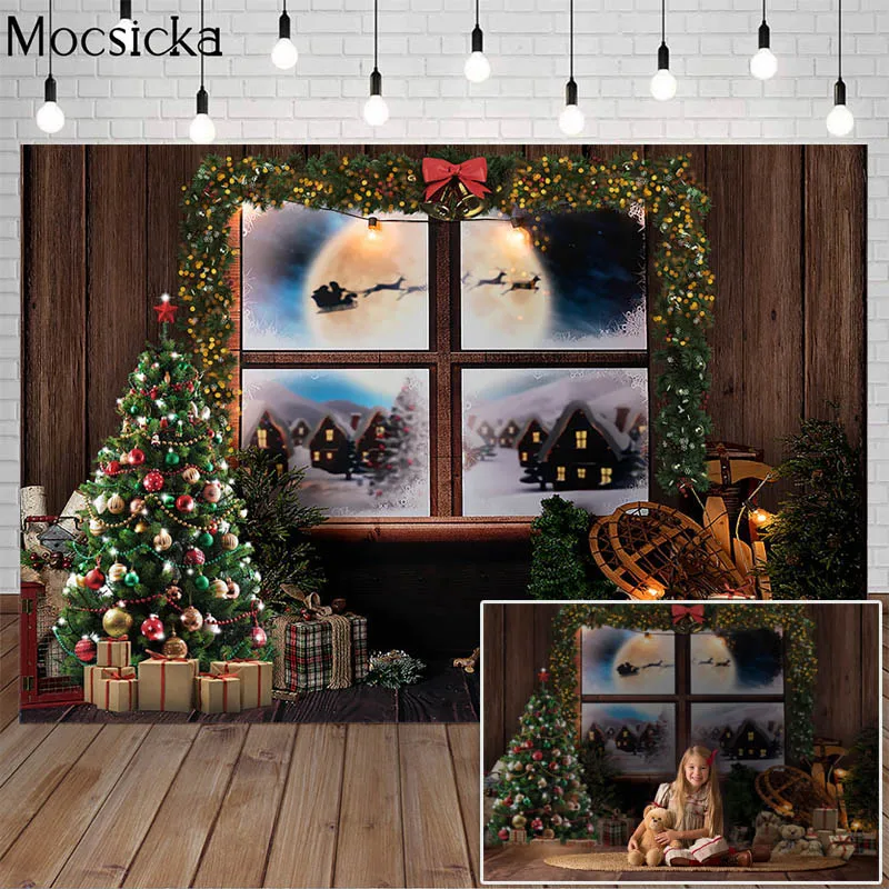 Рождественский камин фон для фотосъемки Рождественская елка винтажная деревенская деревянная стена Рождественский фото фон окна зимняя фотосессия