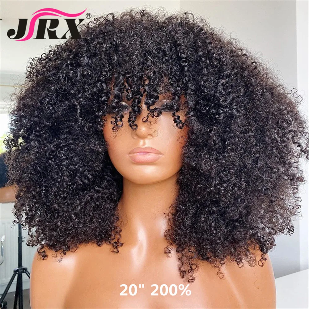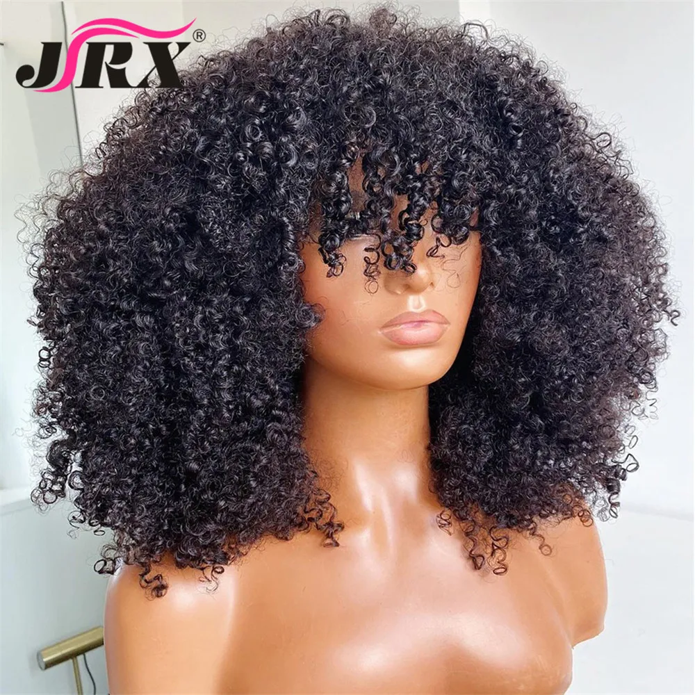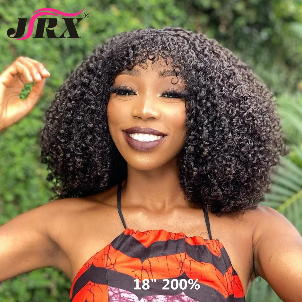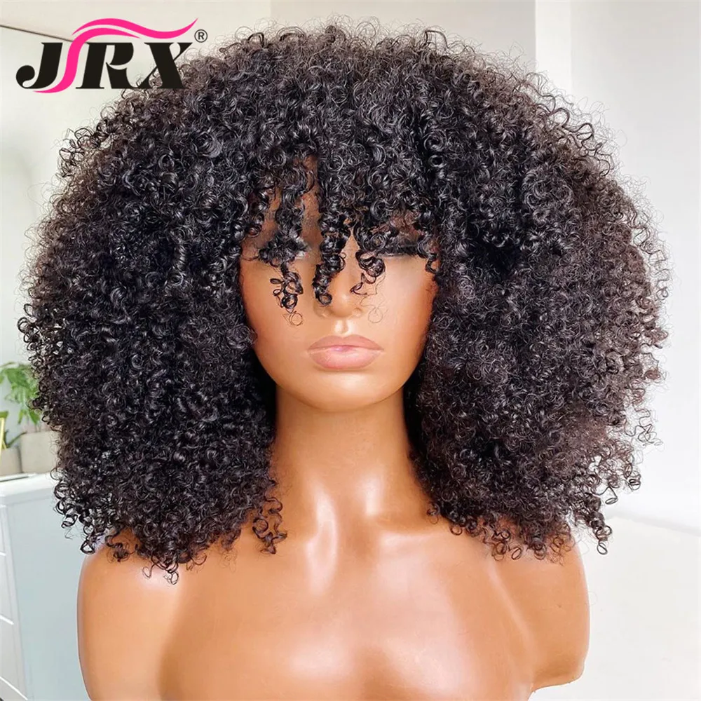 200 плотность афро кудрявые парики для женщин человеческие волосы полная машина сделанные Бразильские короткие вьющиеся парики с челкой человеческие волосы парики Gluless Remy волосы