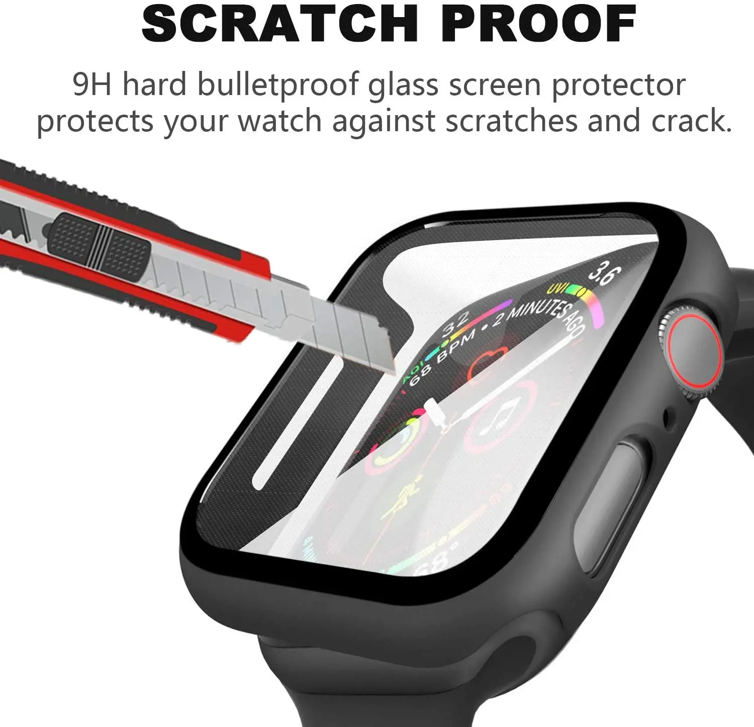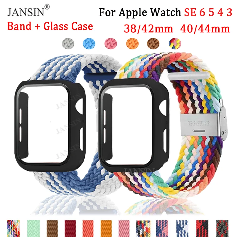 Стеклянный чехол + ремешок для Apple Watch SE 6 5 4, плетеный соло-браслет 40 мм 44 мм, эластичный регулируемый браслет для Apple Watch 38 мм 42 мм