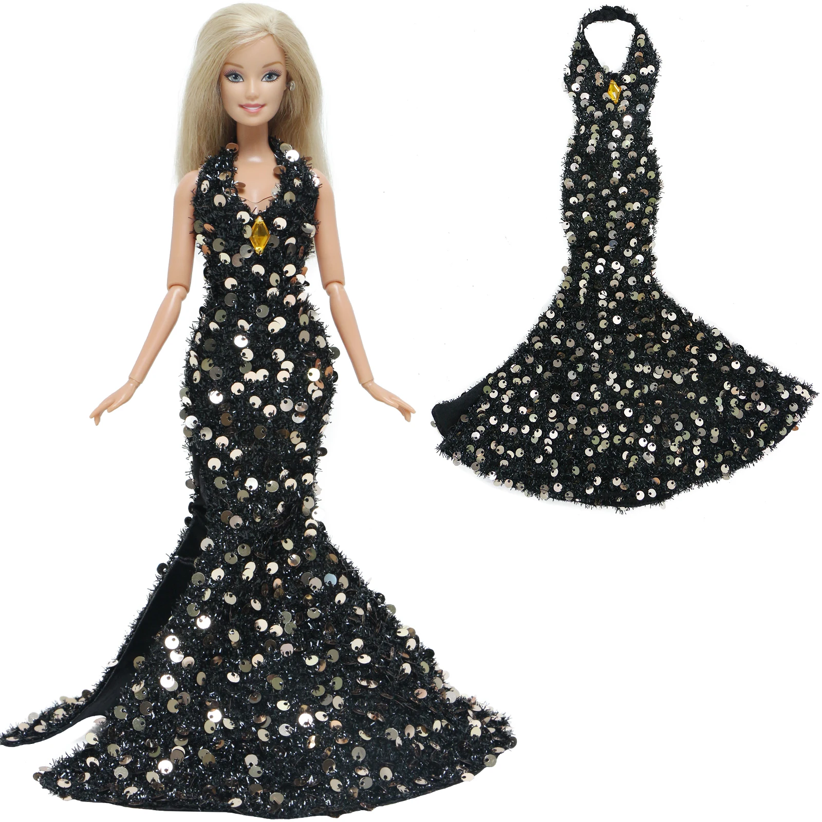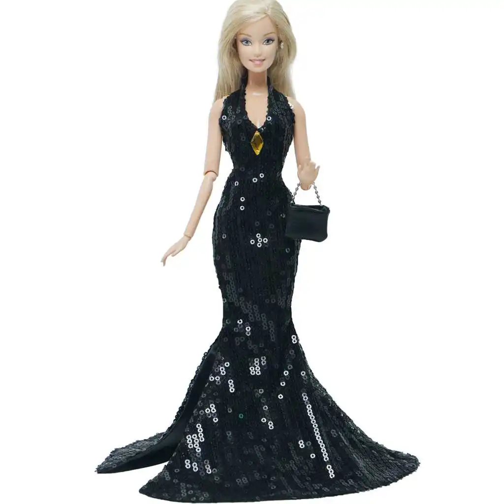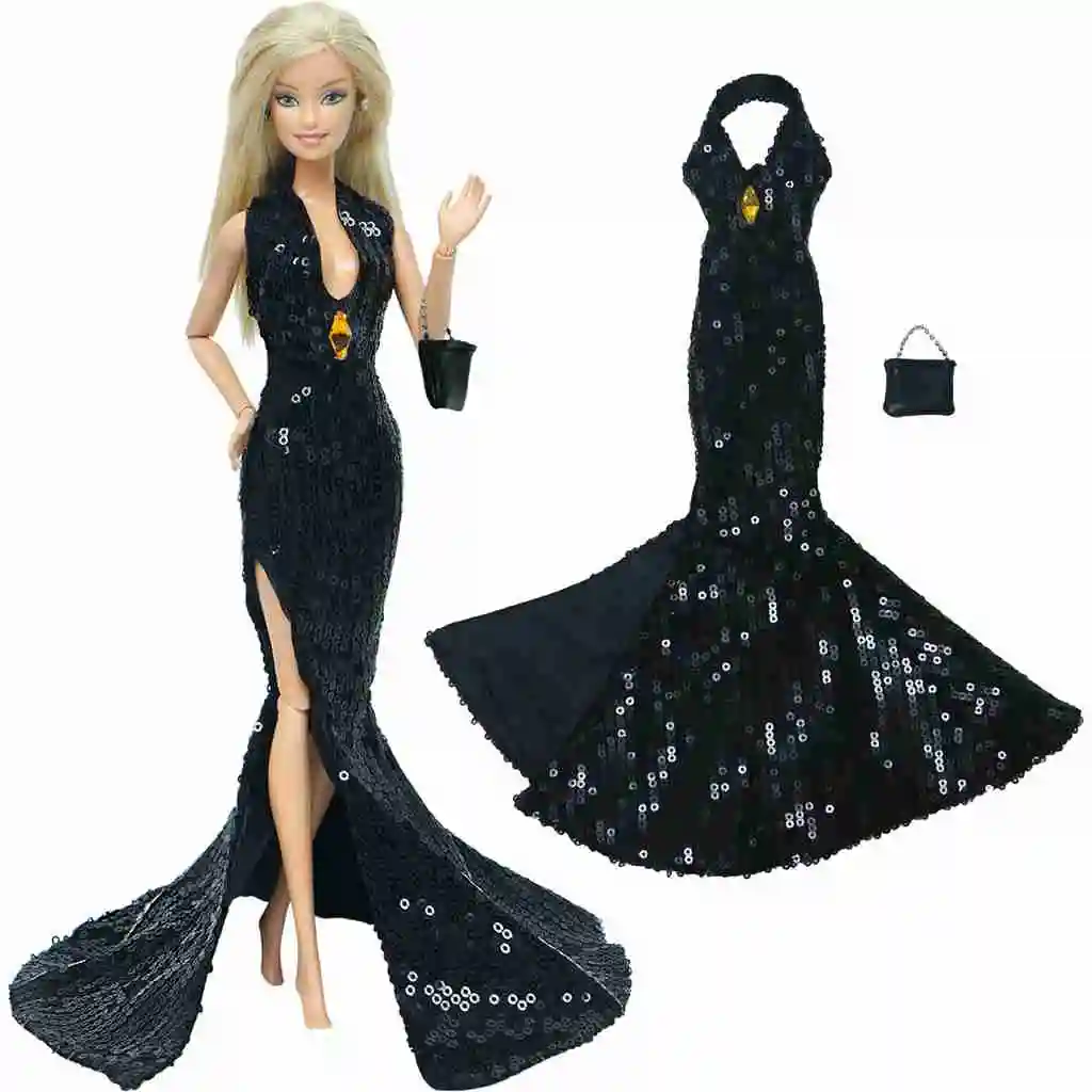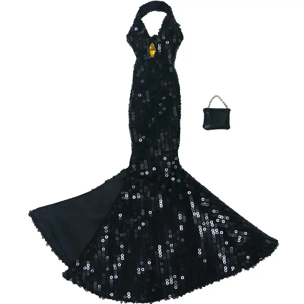 BJDBUS ограниченное черное платье с блестками с глубоким V-образным вырезом и открытой спиной платье русалки с хвостом вечернее сексуальное бальное платье сумка Одежда для куклы Барби коллекция