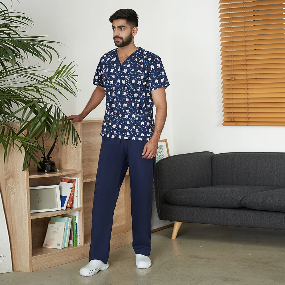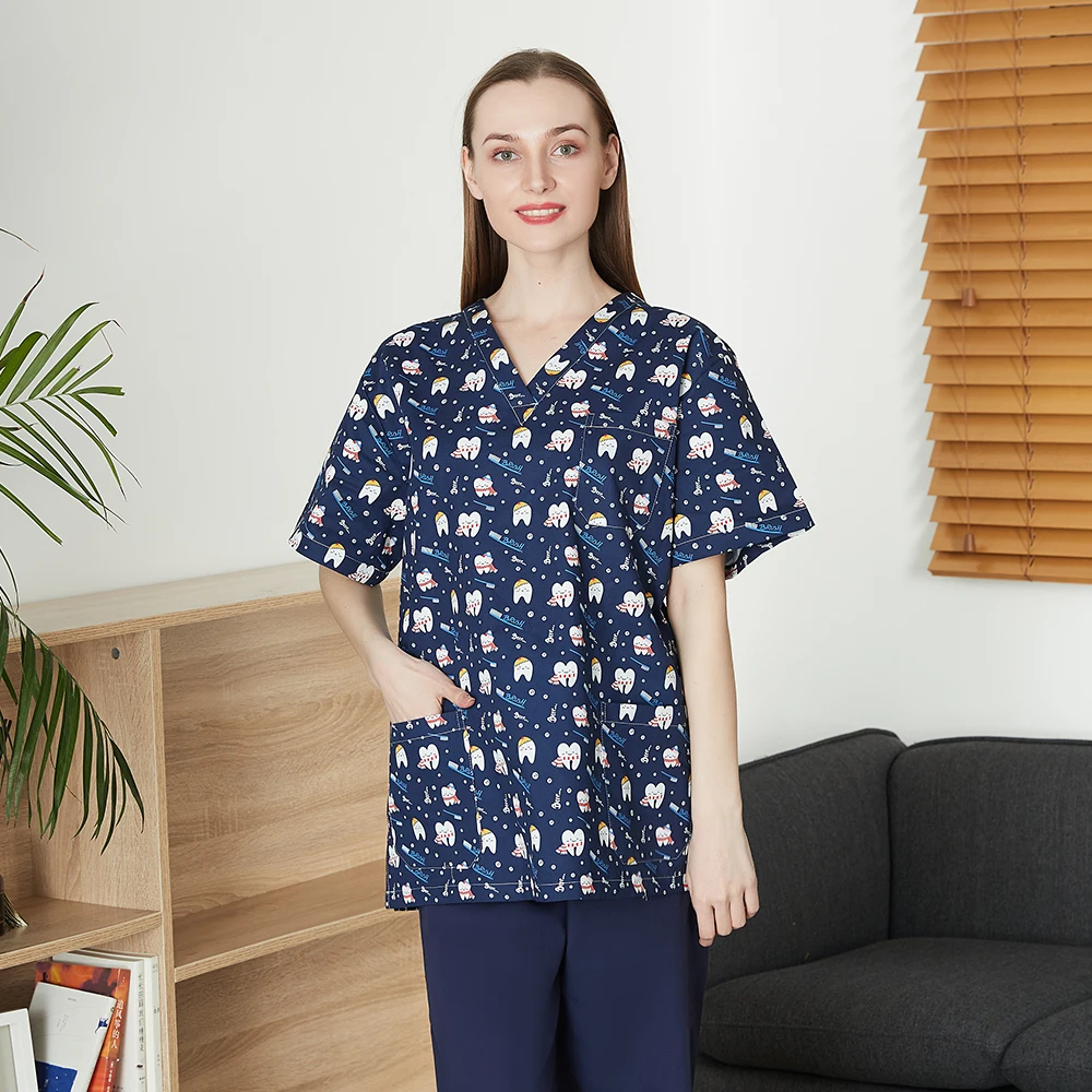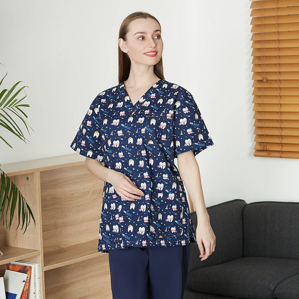 Фармацевтическая Чистящая форма, Рабочая Униформа для стоматолога, клиника, медсестры, стоматолога, медицинский хирургический халат с принтом, чистый хлопок, дышащий