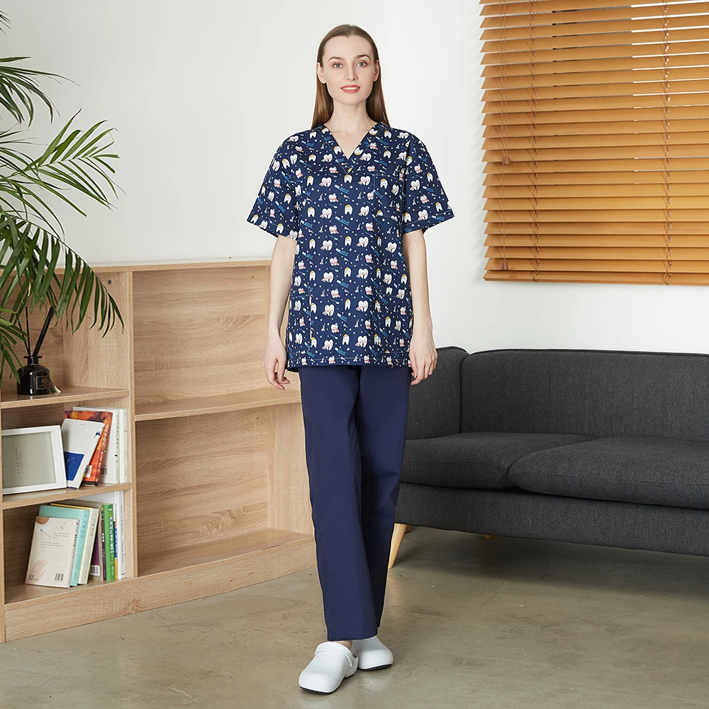 Scrubs tops Cute Cartoon printing Kindergarten teacher workwear pet...