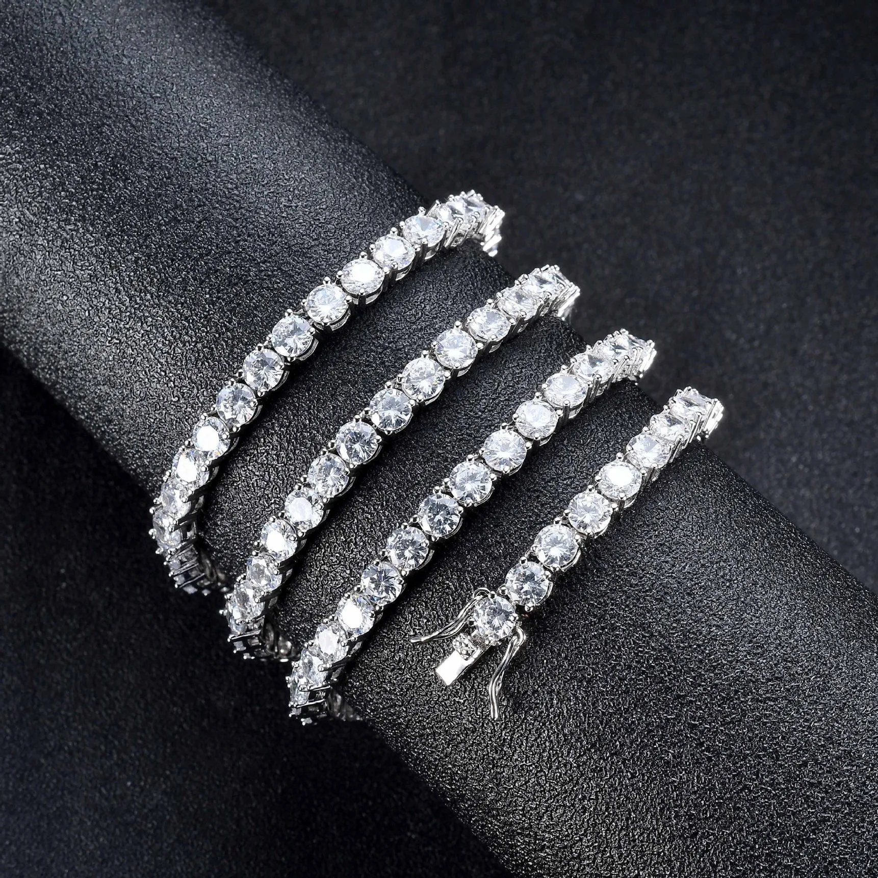 Ожерелье для мужчин и женщин, теннисная цепочка с круглым фианитом, в стиле хип-хоп, с застежкой-коробкой, сверкающий кубический цирконий, ювелирное изделие, 3 мм, 4 мм, 5 мм