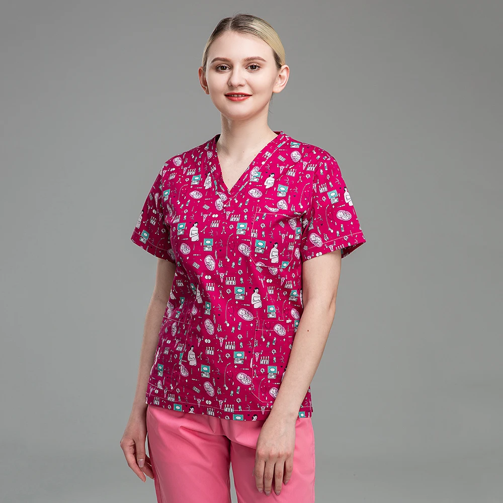 Хирургические Топы Униформа женская, с коротким рукавом, с принтом