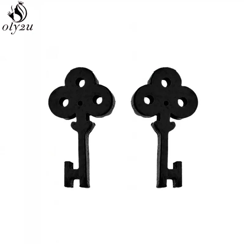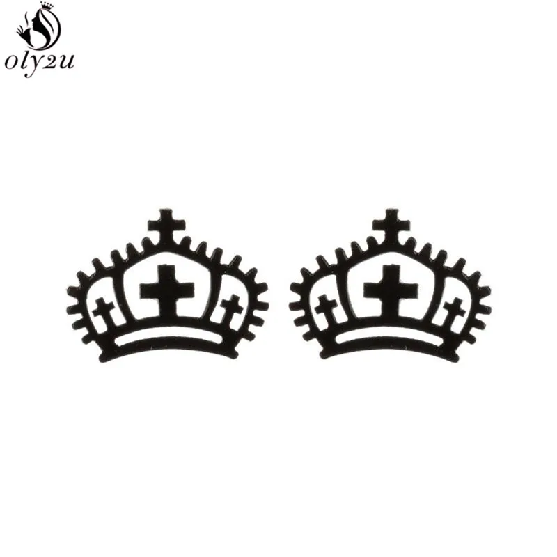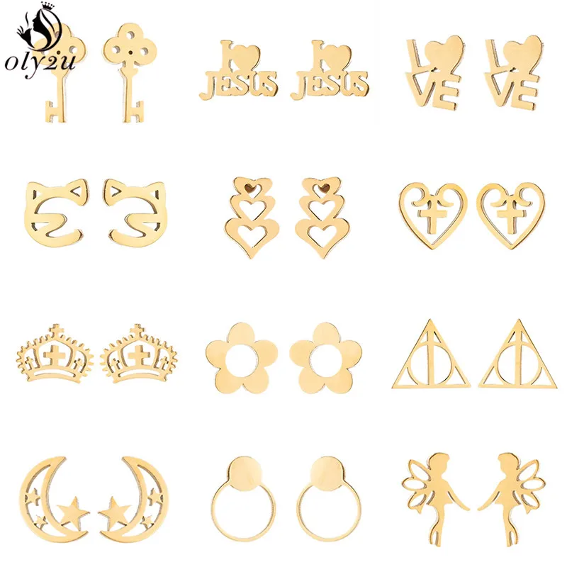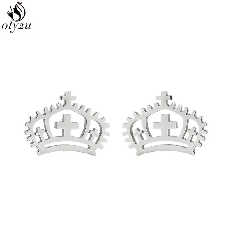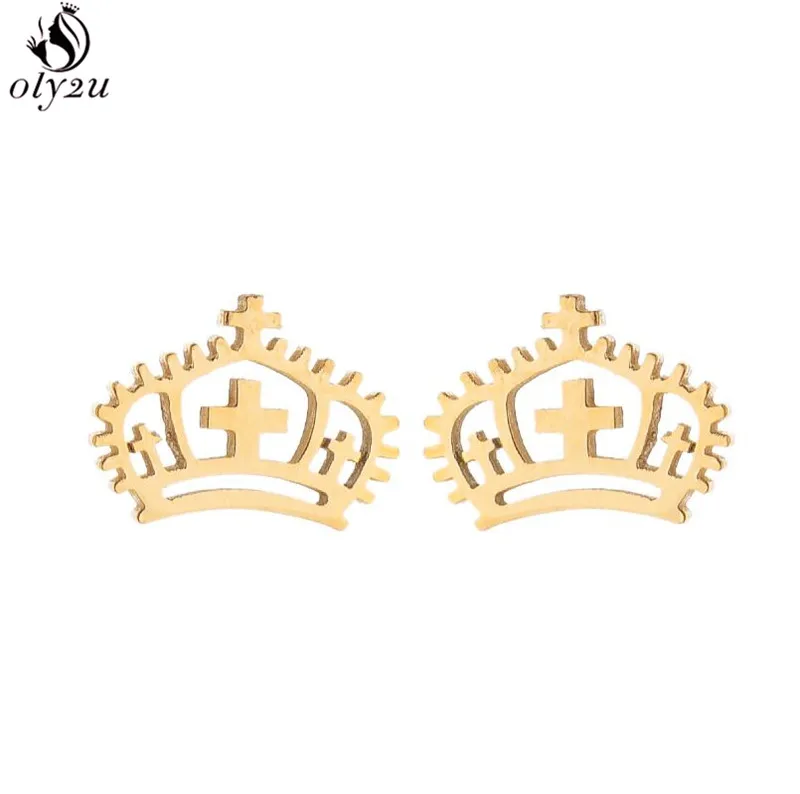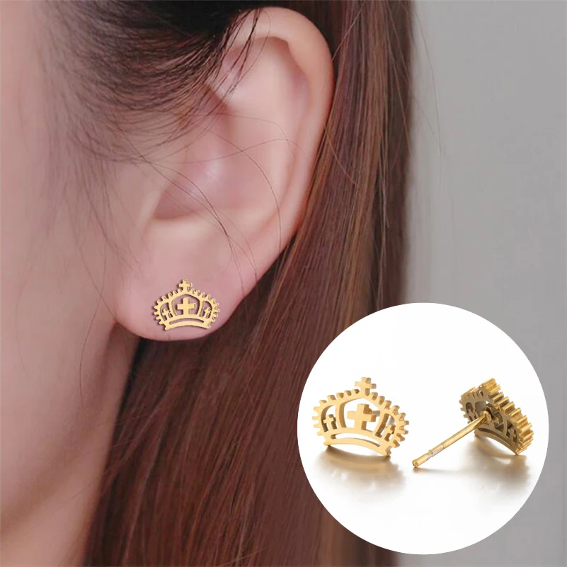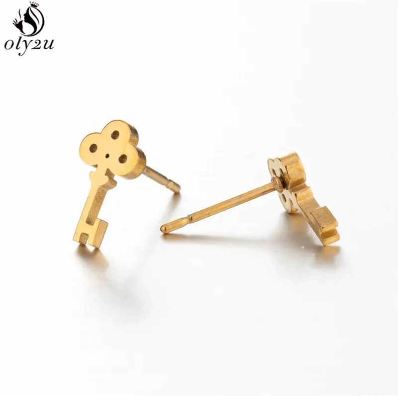 Женские серьги-гвоздики из нержавеющей стали, золотистые минималистичные серьги в форме короны и сердечка с ключом, уникальные украшения для детей