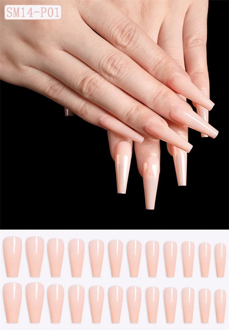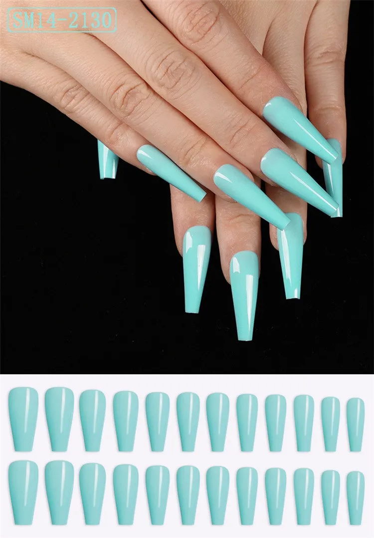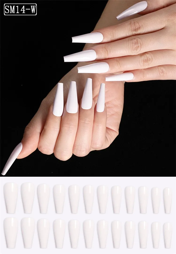 Супер Длинные накладные ногти гроб глянцевый Искусственный пластик ...