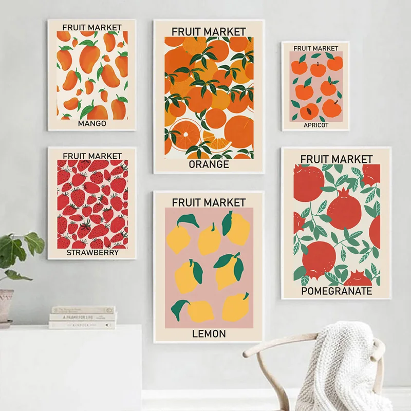 Вишня фруктовый рынок, лимон, винтажные постеры и принты груши, банана, оранжевого цвета, настенная живопись на холсте, настенные картины для декора кухни