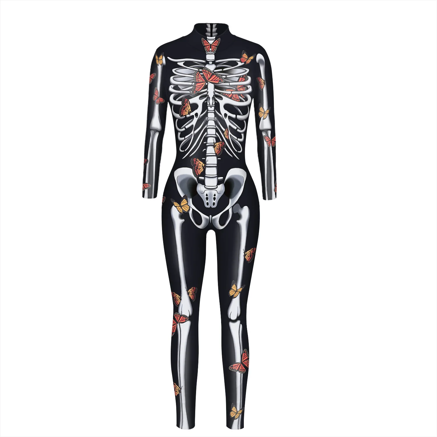 Женский Облегающий комбинезон с рисунком скелета на Хэллоуин
