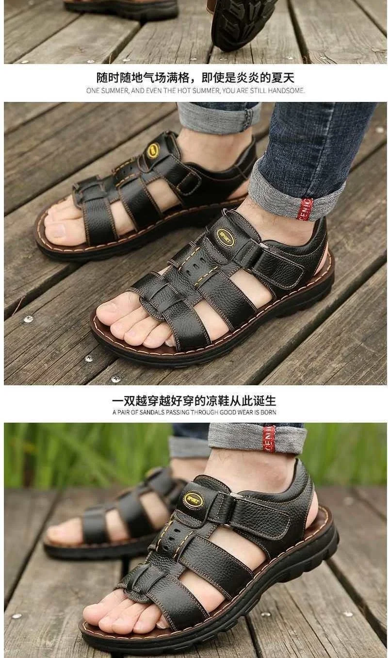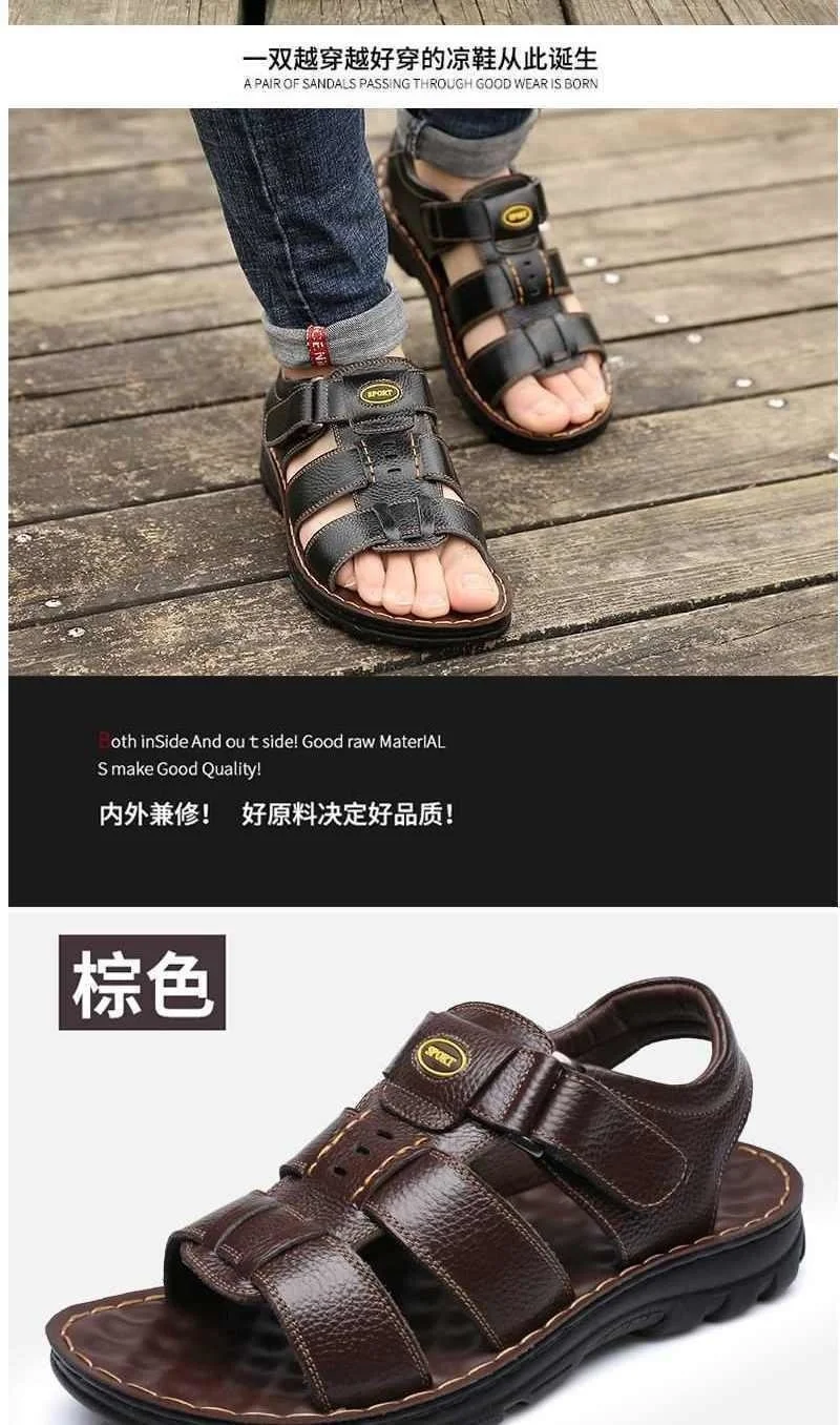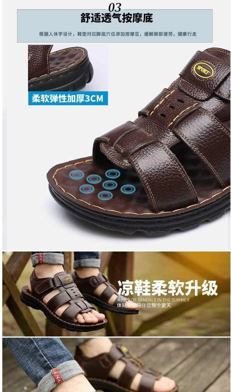 Кожаные сандалии, мужская обувь нескользящие шлепанцы, модная обувь...