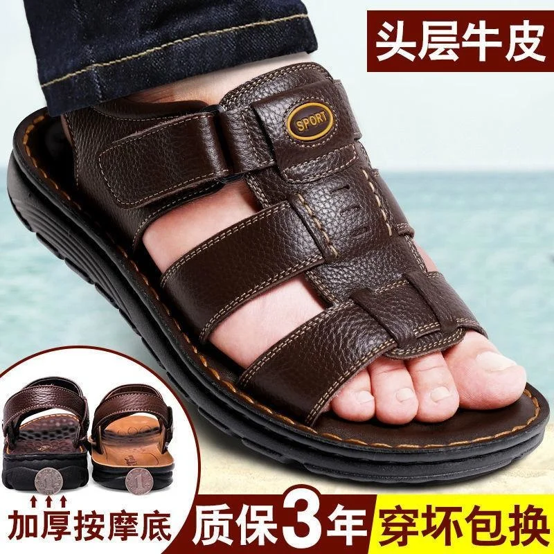 [Быстрый возврат] [Топ Кожа] мужские сандалии тапочки Нескользящие кожаные модные повседневные кожаные сандалии мужская обувь высокого качества Wenzhou