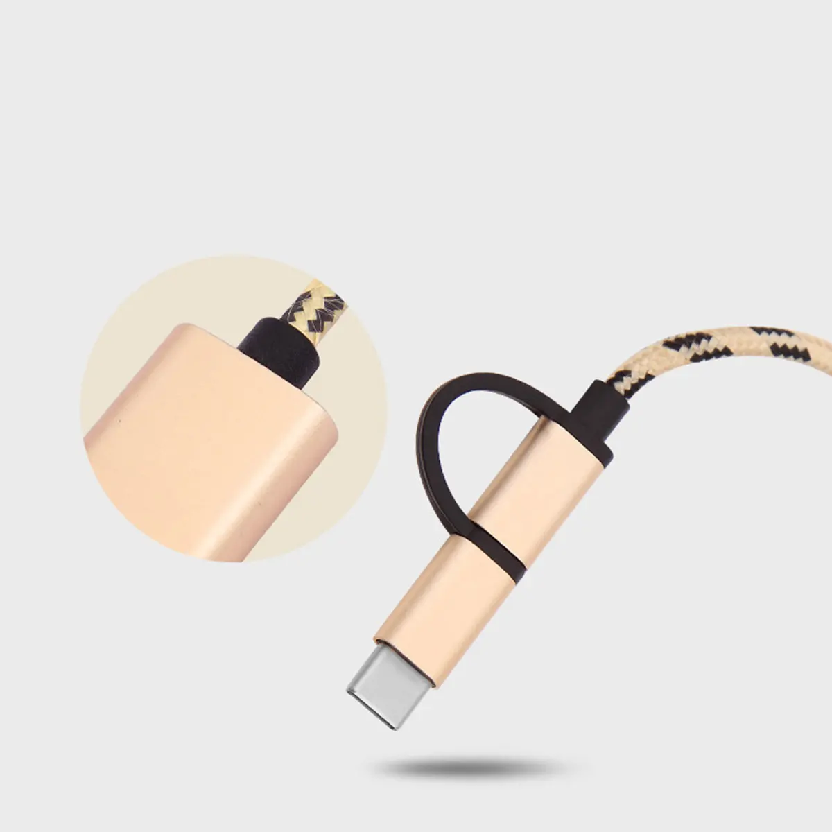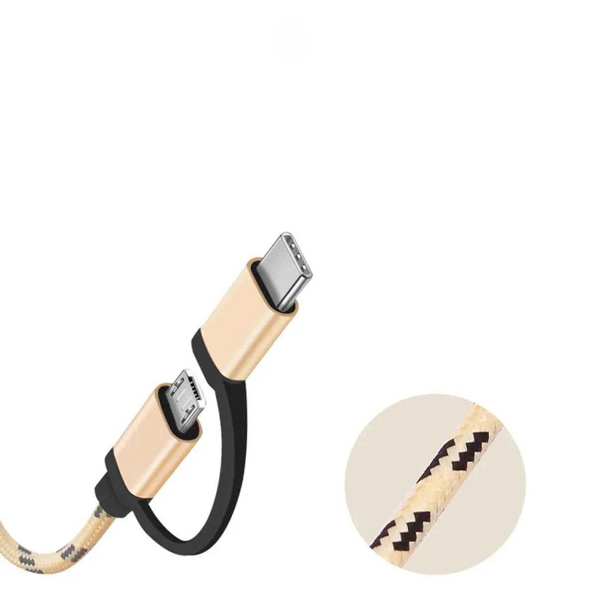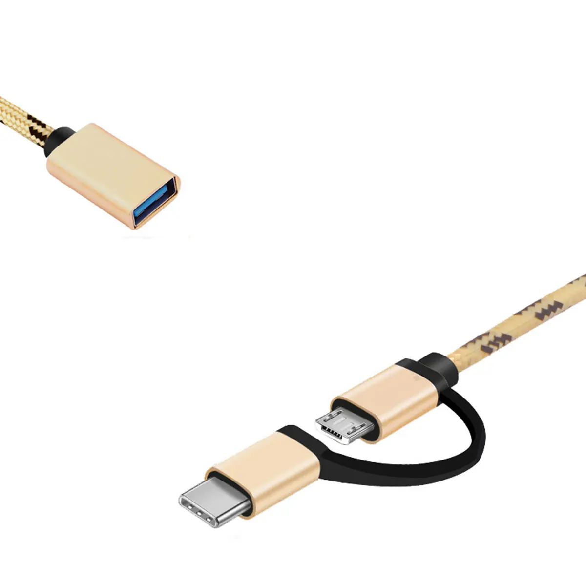 Переходник интерфейса 2 в 1, 3 цвета, OTG, кабель передачи данных для мобильного телефона, синхронизация, адаптер, нейлоновая оплетка, USB 3,0 на Micro USB Тип C