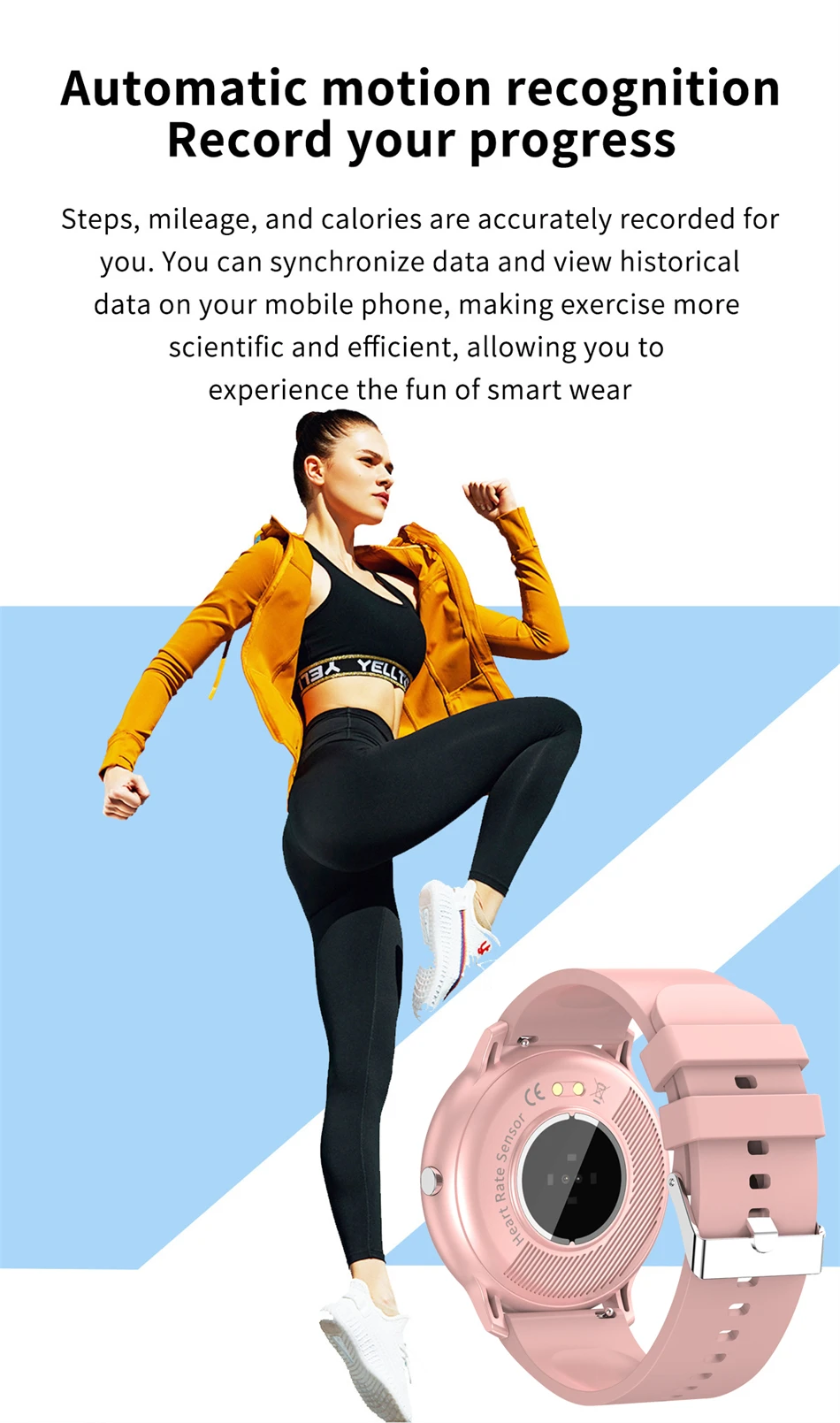 Product parametersScreen:1.28-inch TFT 240*240Touch Panel:Full screen touchBattery:220MahApp:Da FitCharging method:MagneticWaterproof:IP67Hardware parameterBluetooth version:BLE 4.0System version:Android above 5.0 or IOS above 9.0Software functionSide button, multiple interface design on the APP side, user-selected use, exercise, sleep detection, blood pressure, incoming call/message content push, message reminder, alarm clock, shake or click to take a picture, raise the wrist to brighten the screen, switch the system, and remind you to sit for a long time , Stopwatch, look up the phone, adjust the brightness of the bracelet, and adjust the duration of the bracelet’s bright screen.LanguageBracelet supports languages: English, Simplified Chinese, French, German, Italian, Spanish, Russian, PortugueseAPP(Da Fit) supports languages: Danish, Ukrainian, Russian, Bulgarian, Bokmal, Norwegian, Hindi, Indonesian, German, Italian, Czech, Japanese, Pashto, French, Polish, Thai, Swedish, Simplified Chinese, Traditional Chinese, Finnish, English, Dutch, Portuguese, Spanish, Vietnamese, Arabic, KoreanPackage IncludedHost, charger, wrist strap, manual, boxafter receive the watch ,please charging first.Because after a long period of logistics, the watch has a low battery.Before using, scan the QR code on the manual to download the app and connect it to the watch with APP.