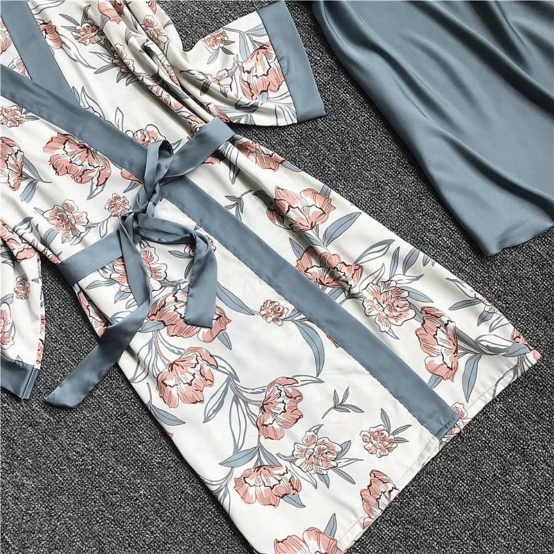 Женский Атласный халат, из искусственного шелка, с цветочным принто...