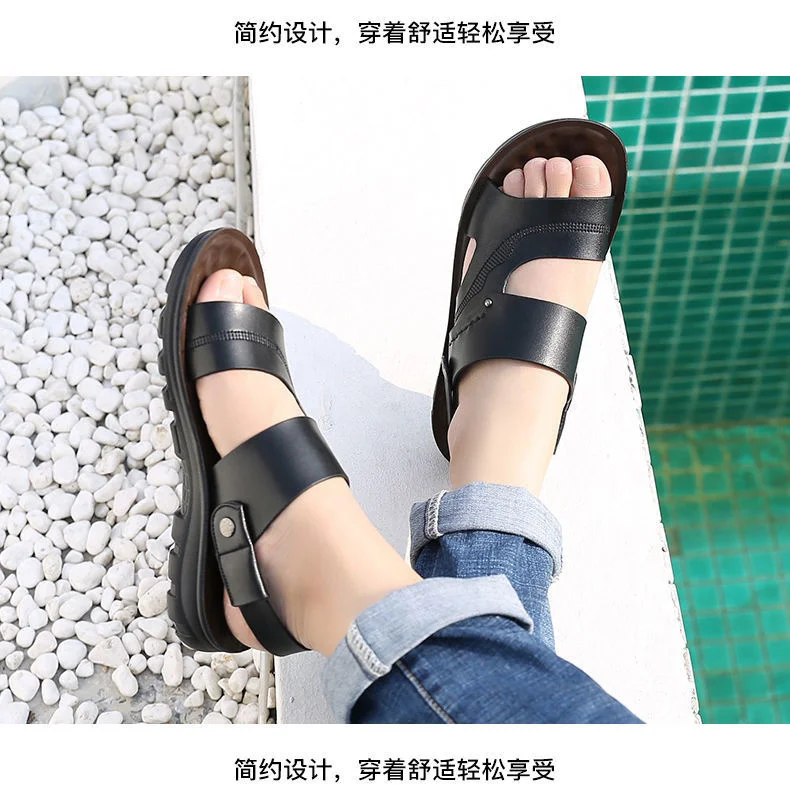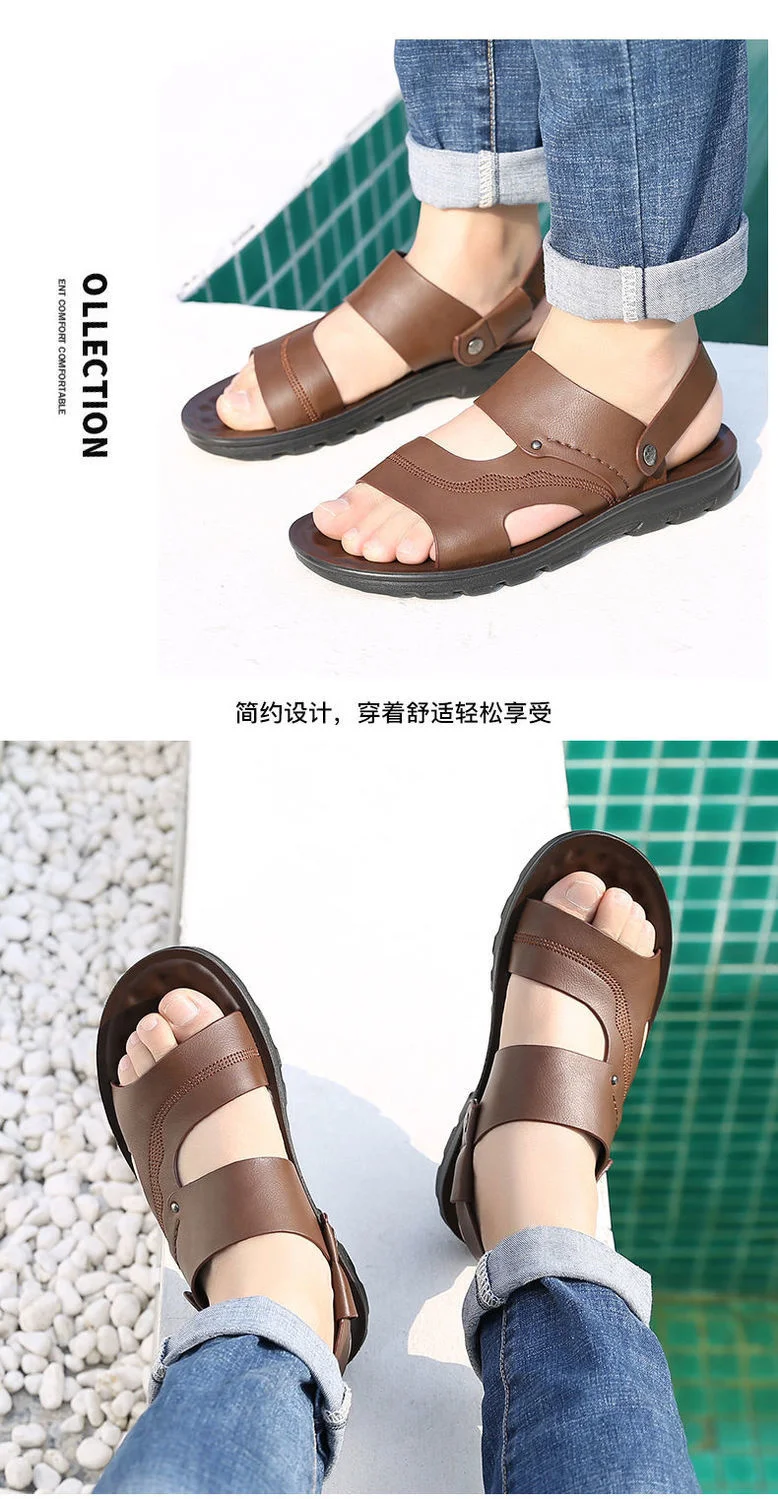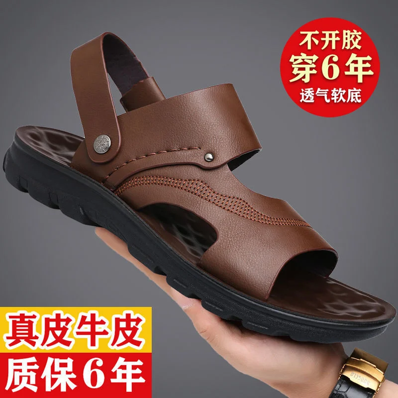 [Быстрый возврат] сандалии для мужчин; Кожаная пляжная обувь на мягкой подошве; Сезон лето