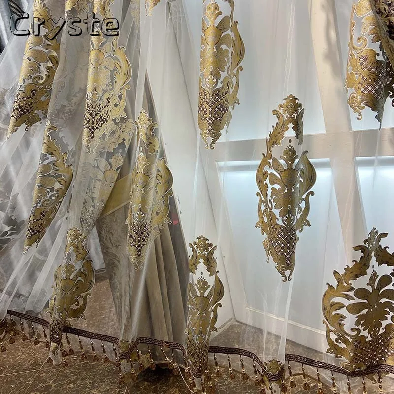 Роскошные бархатные затемняющие шторы в европейском дворцовом стиле, резные золотые шторы с карри для гостиной, столовой, спальни