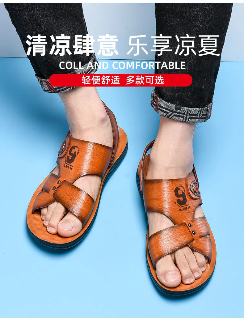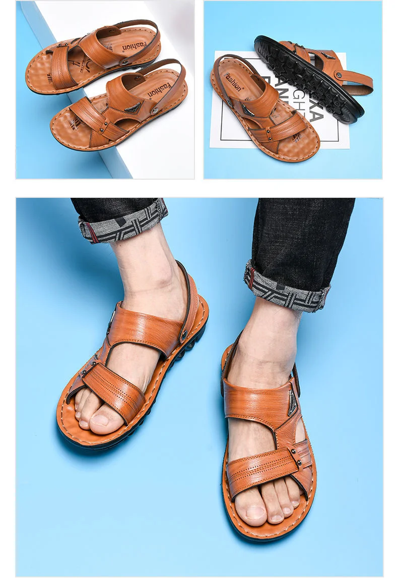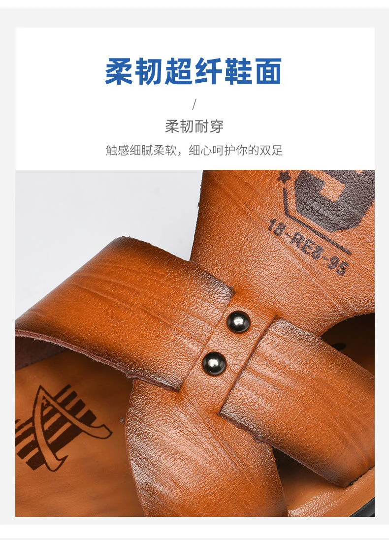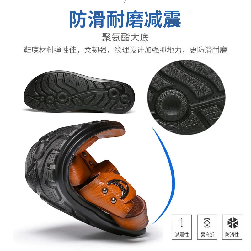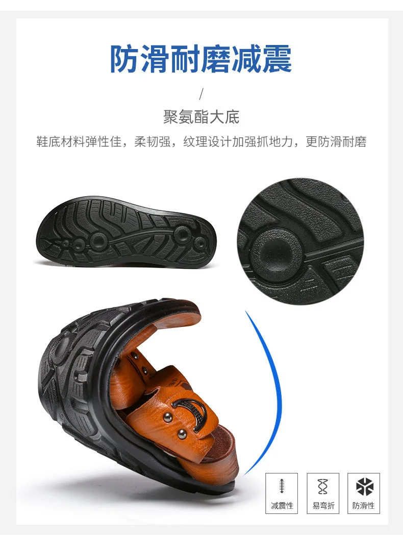Кожаные сандалии, мужская обувь нескользящие шлепанцы, модная обувь...