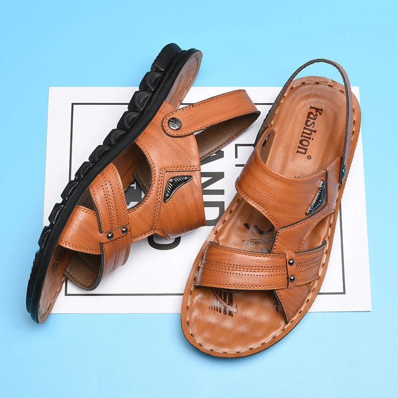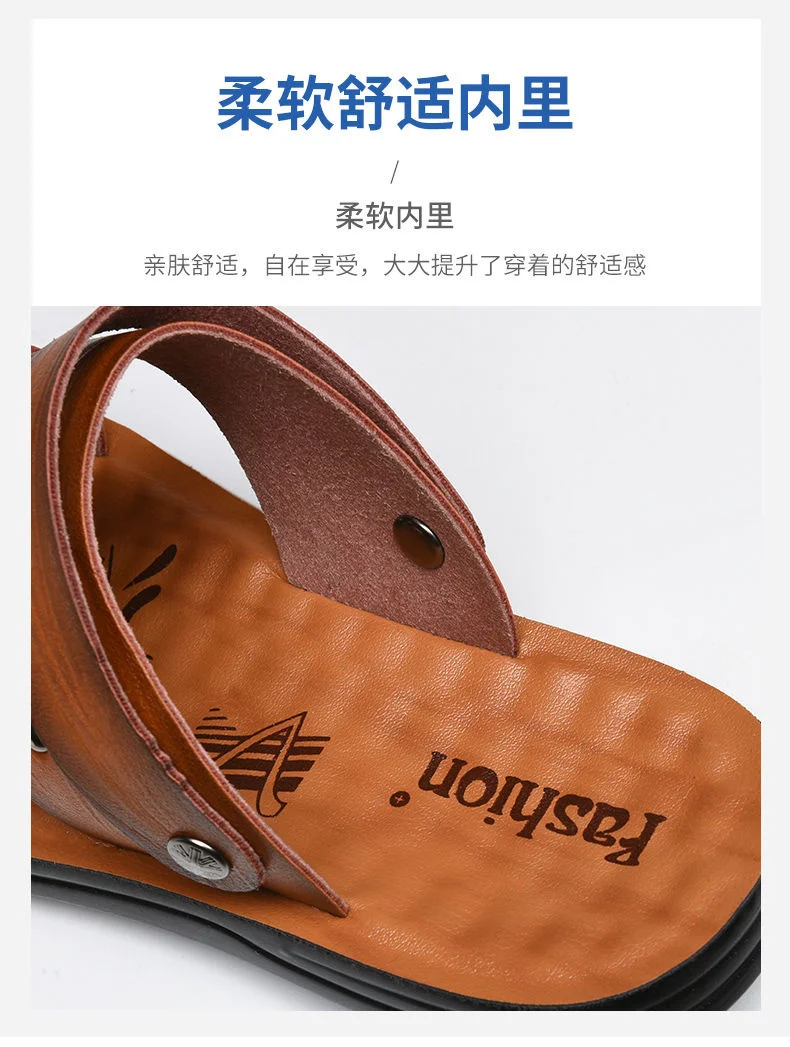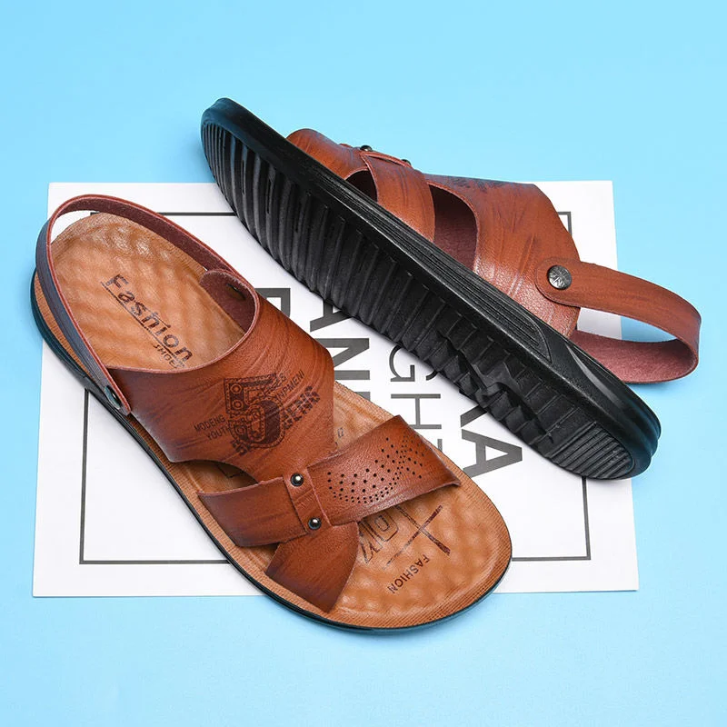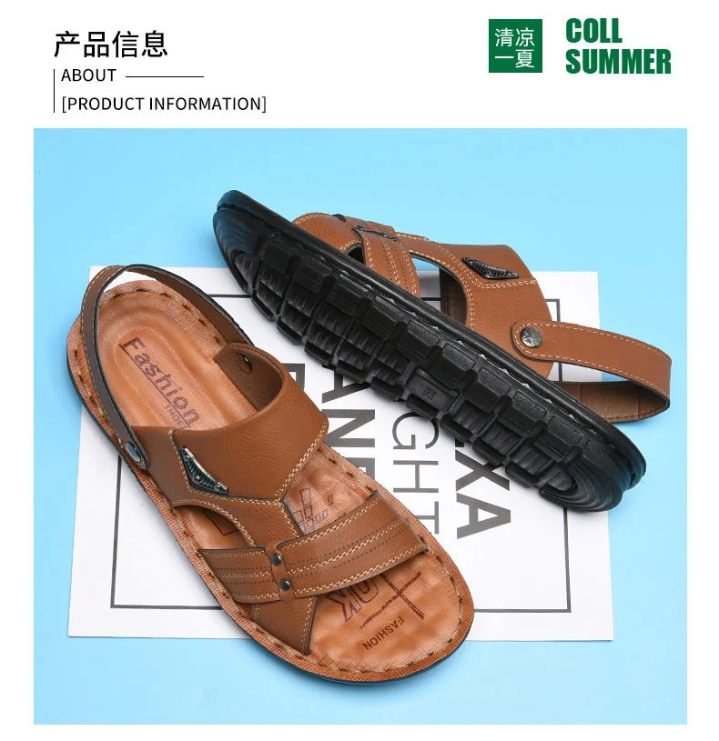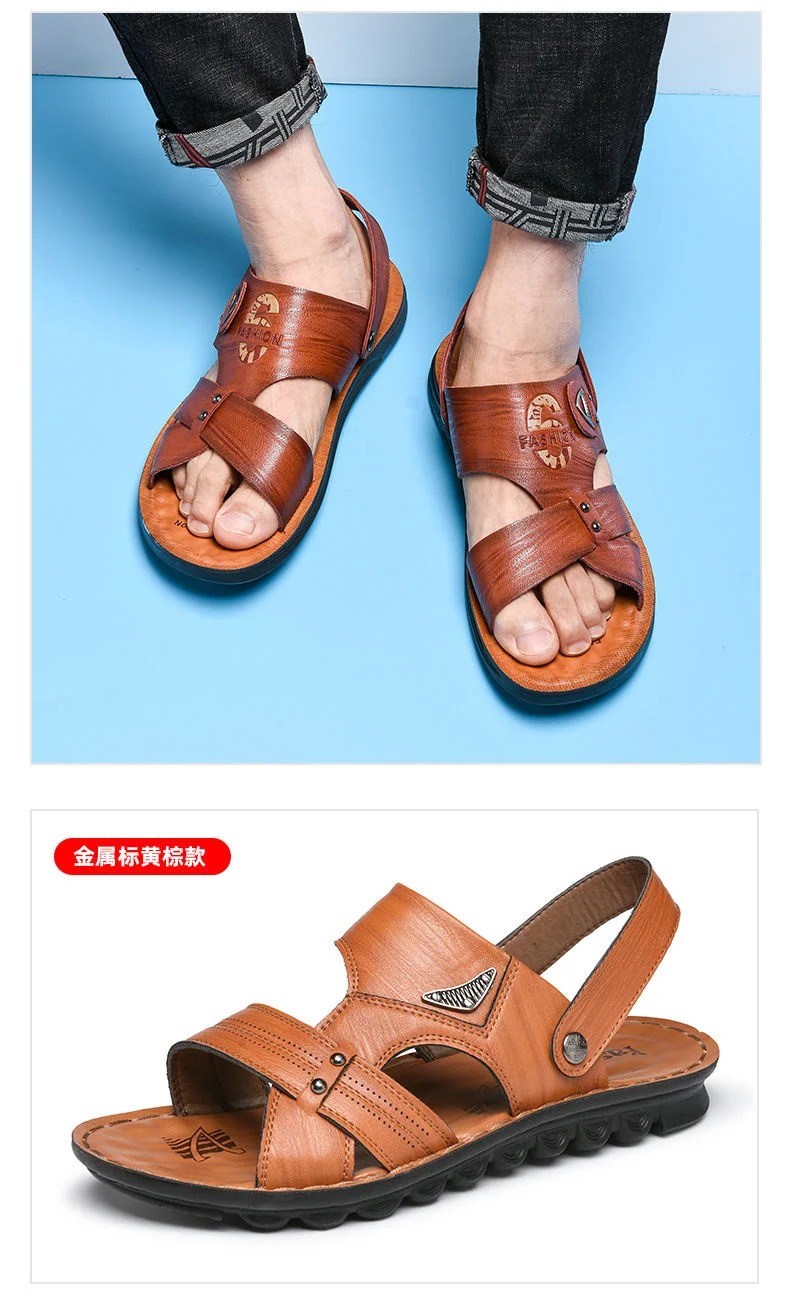 Кожаные сандалии, мужская обувь нескользящие шлепанцы, модная обувь...