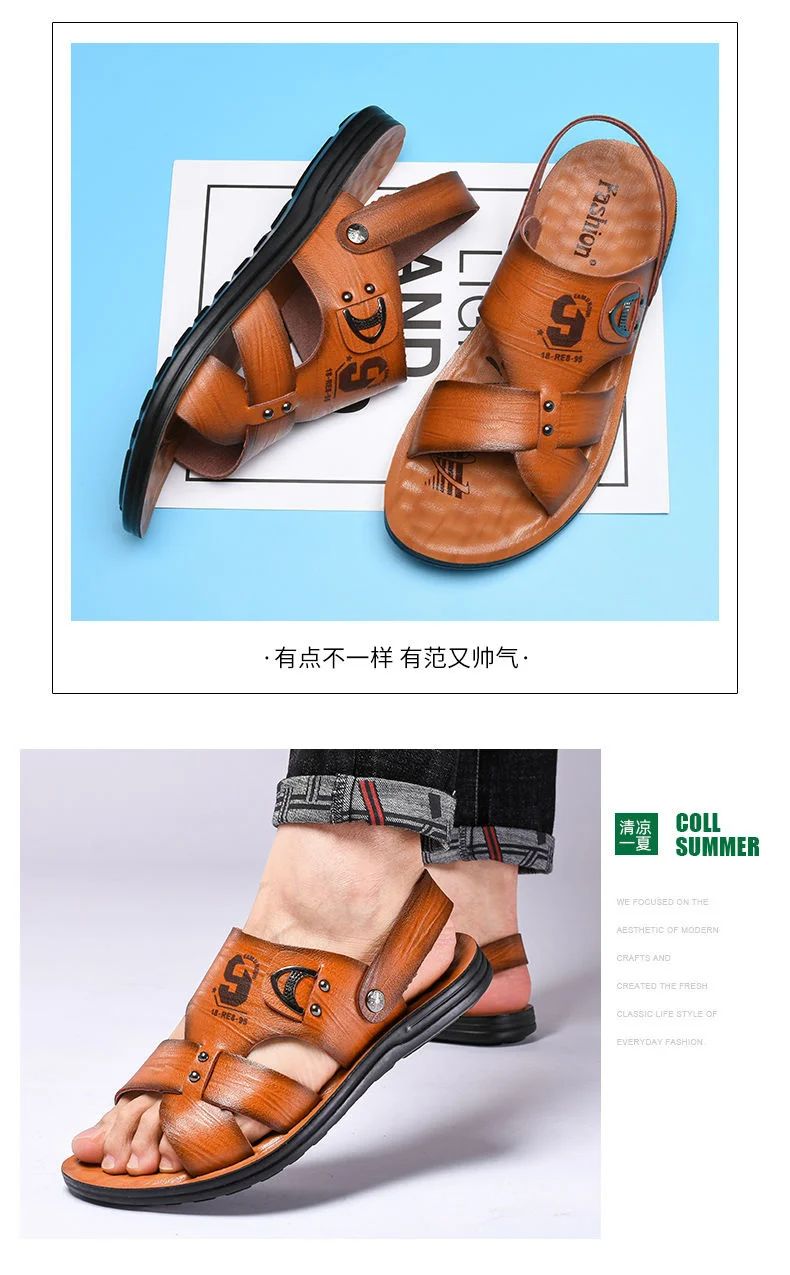 Сандалии искусственная кожа модные кожаные сандалии мужская обувь в...