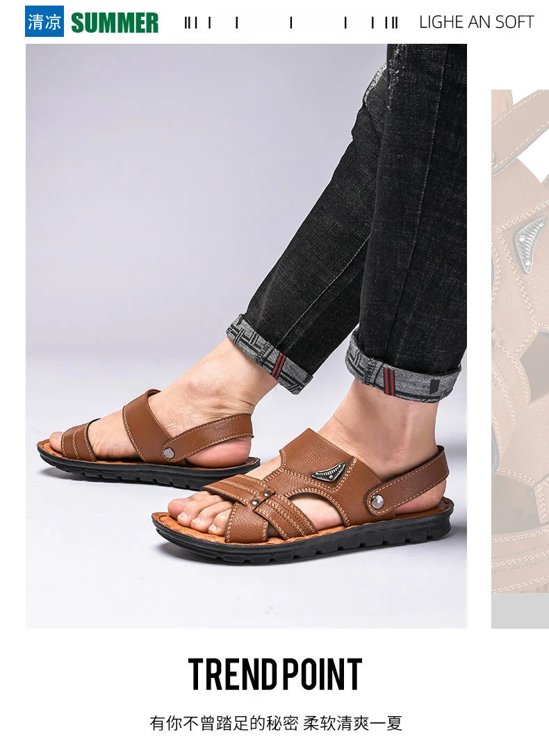 Мужские кожаные сандалии, уличная спортивная обувь, Новинка лета 2021