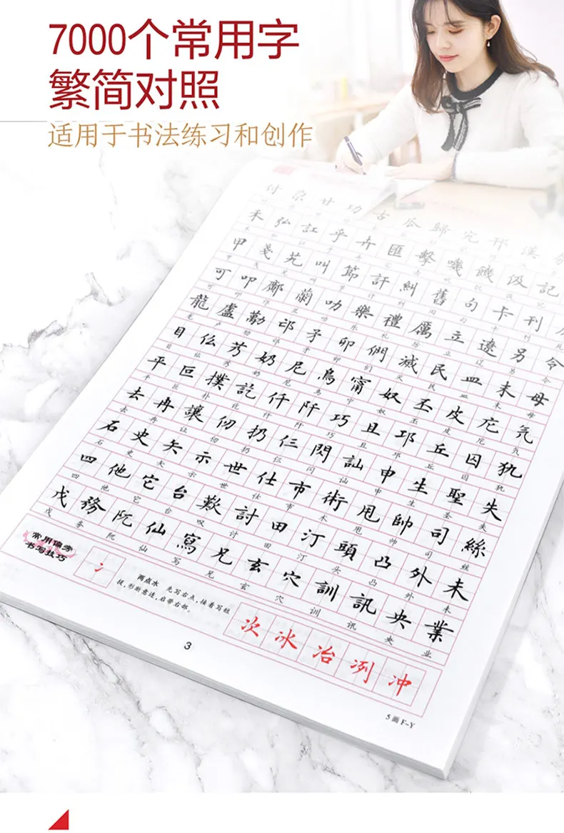 Новинка, 4 книгикомплект, 7000 простых китайских иероглифов, Кай Шу, син шу, Син Кай, китайская Ручка, каллиграфия, тетрадь