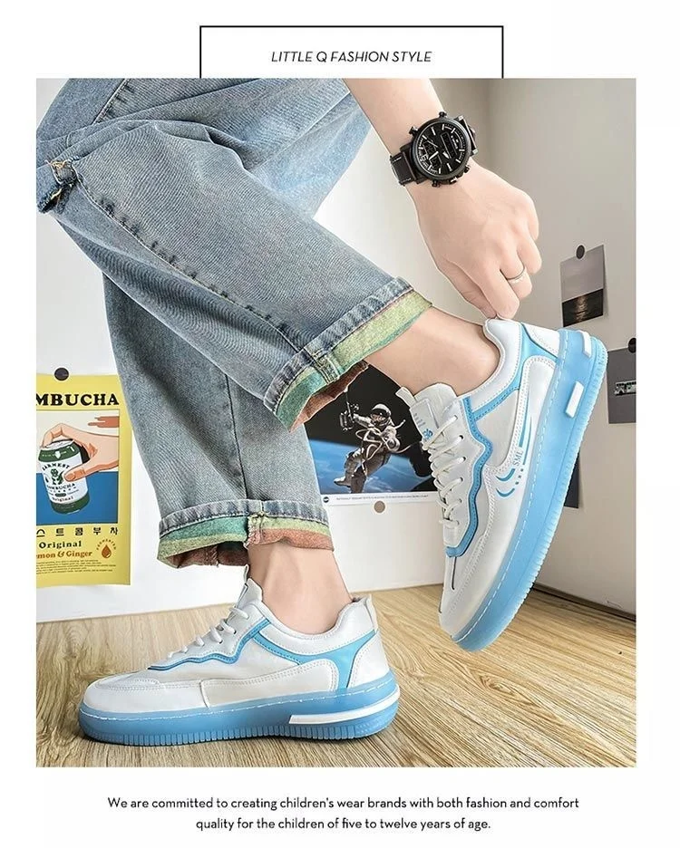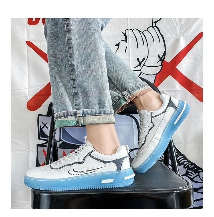[Быстрый возврат] Мужская обувь; Коллекция 2021 года; Корейская мода; Новинка; Летние универсальные спортивные маленькие белые туфли; Мужская обувь для отдыха; Цвет белый, светло-голубой