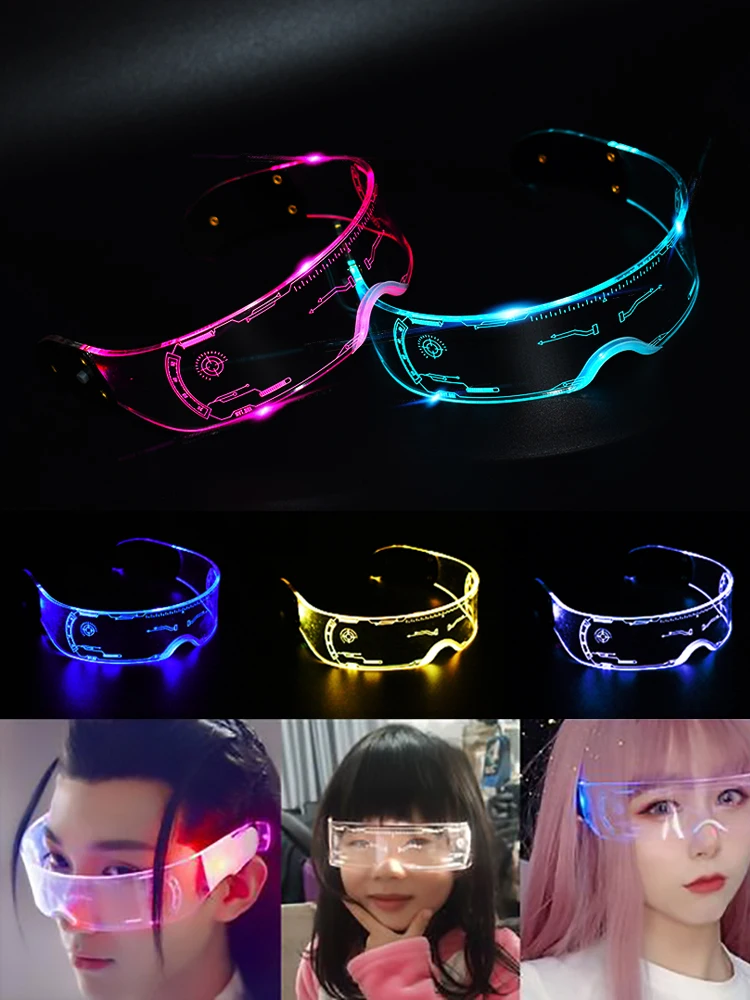 Крутые светодиодные очки, светящиеся солнцезащитные очки, очки для вечевечерние в стиле киберпанк, неоновая маска, игрушки, декоративные очки для диджея для вокала, концерта
