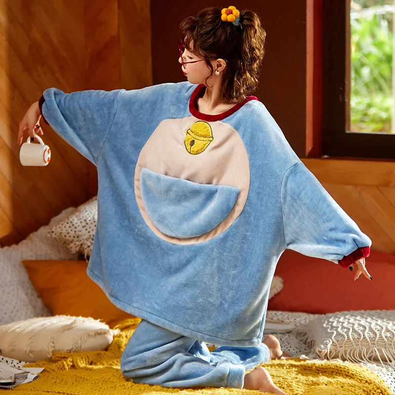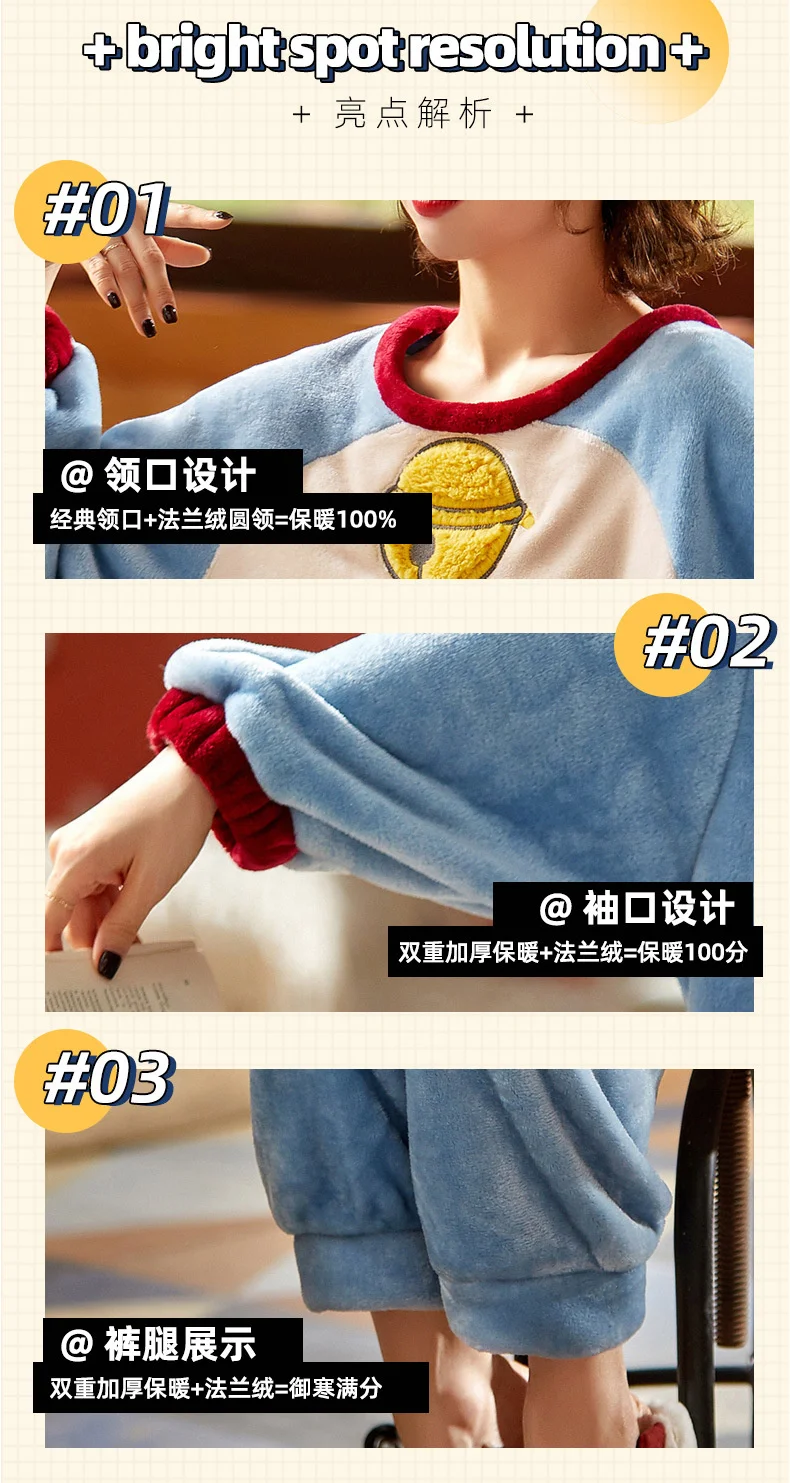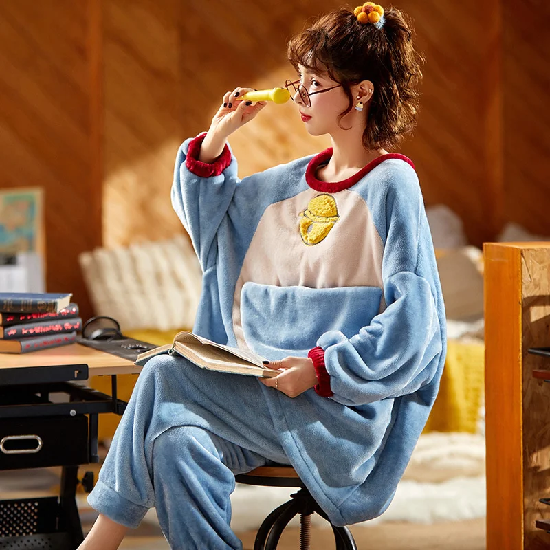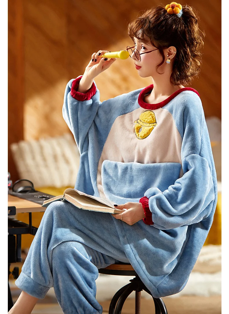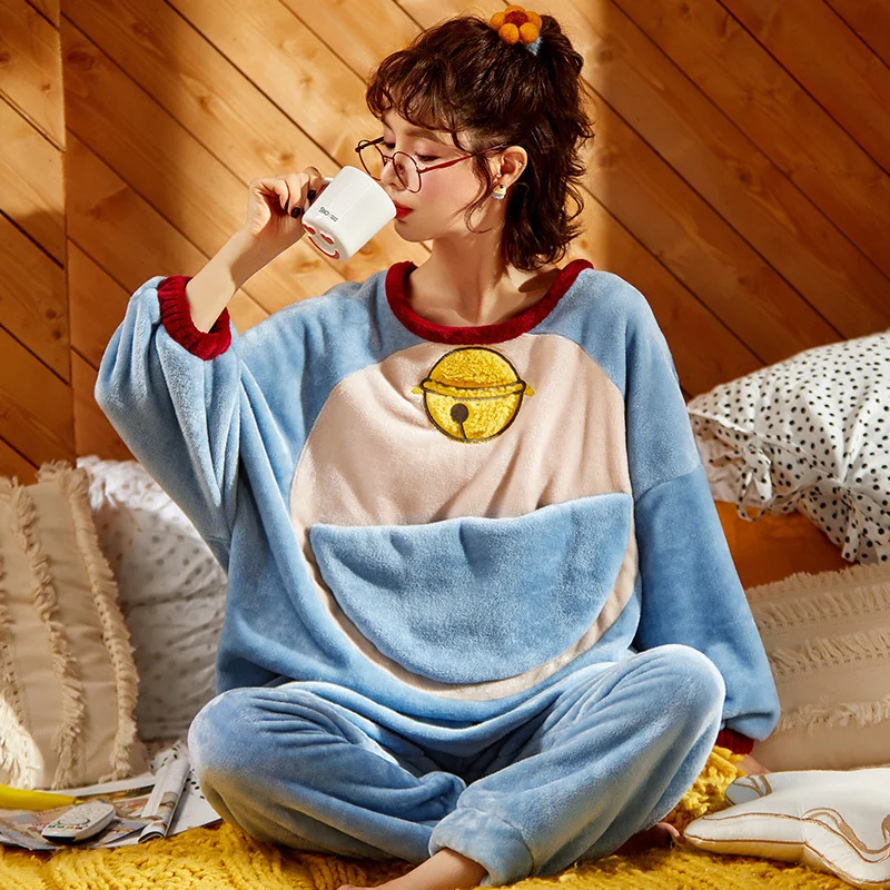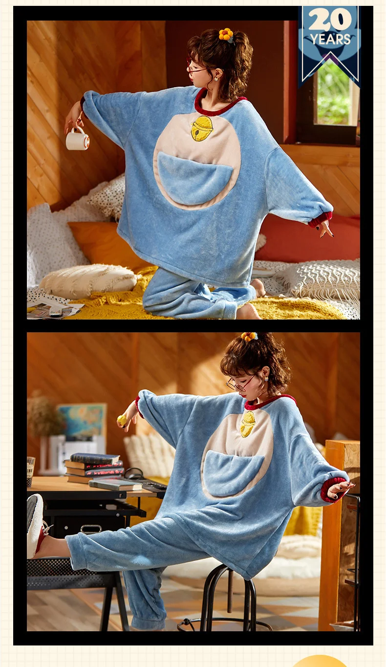 Зима 2020, Женский пижамный комплект, Фланелевая пижама Дораэмон с мультяшным рисунком, одежда для сна из 2 предметов, одежда для отдыха, аниме, свободная Пижама для женщин
