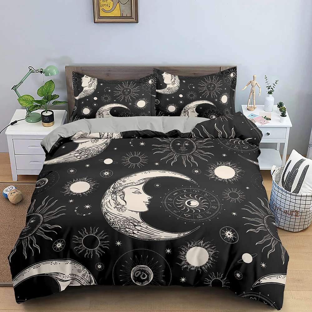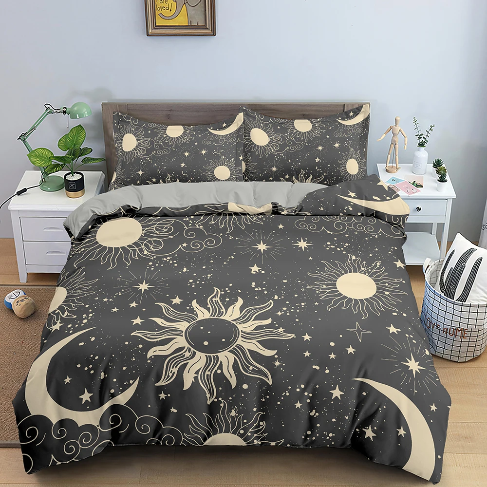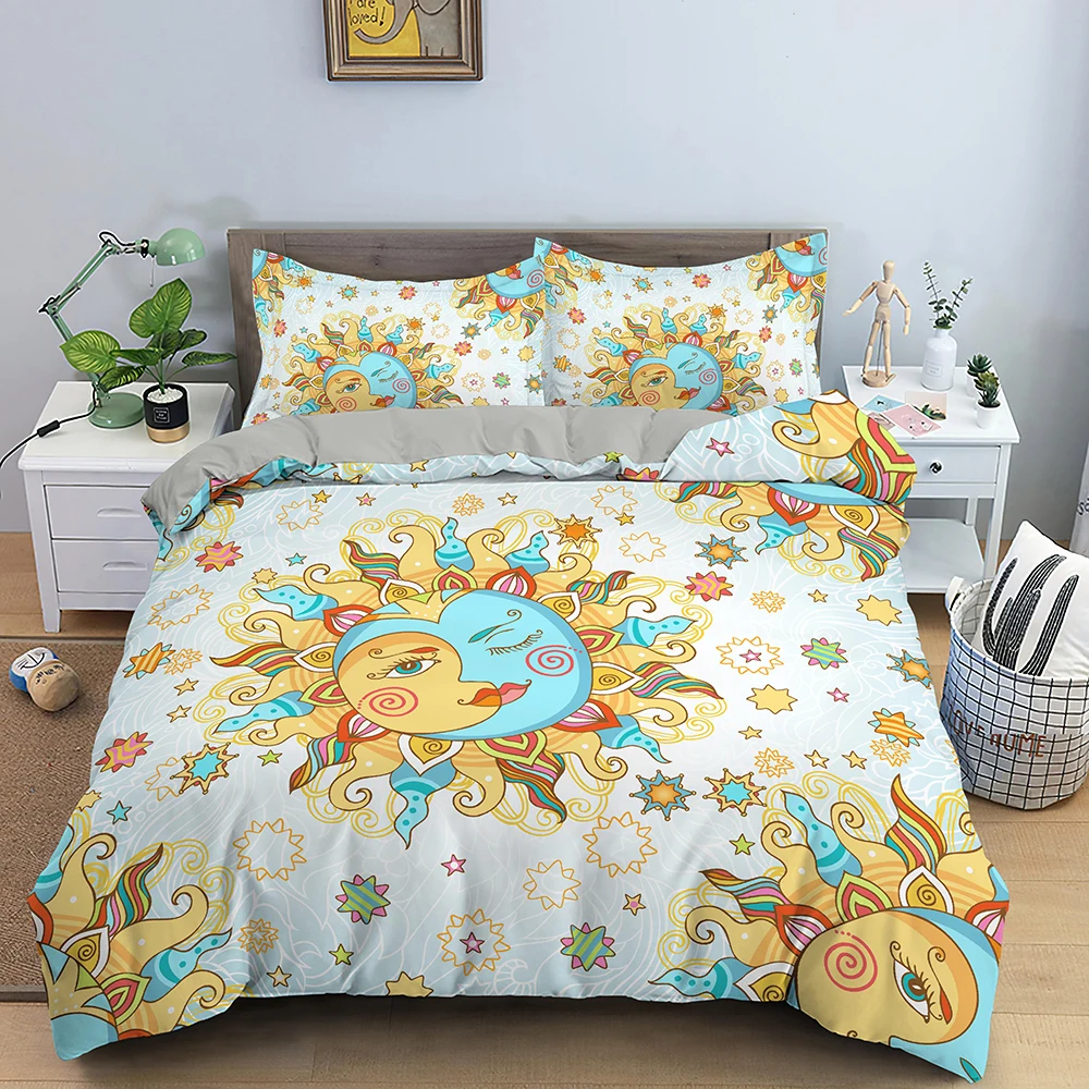 Комплекты постельного белья в богемном стиле, постельное белье с изображением вселенной, Солнца и Луны, пододеяльник, наволочка, 23 шт., односпальный, двуспальный, большого размера